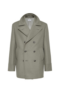Brunello Cucinelli Wool flannel Caban jacket in Khaki at Nordstrom