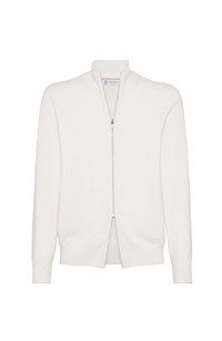 The noble cashmere fiber is characterized by an extreme fineness and also for its precious insulating qualities which guarantee warmth, providing coverage and lightness when worn. Two-way zip closure High collar in rib knit Rib knit cuffs and bottom band Plain stitch