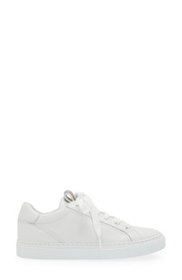Monili beading elevates the sleek, monochrome aesthetic of a low-top sneaker fashioned from luxe Italian leather. Lace-up style Leather upper, lining and sole Made in Italy Designer Shoes