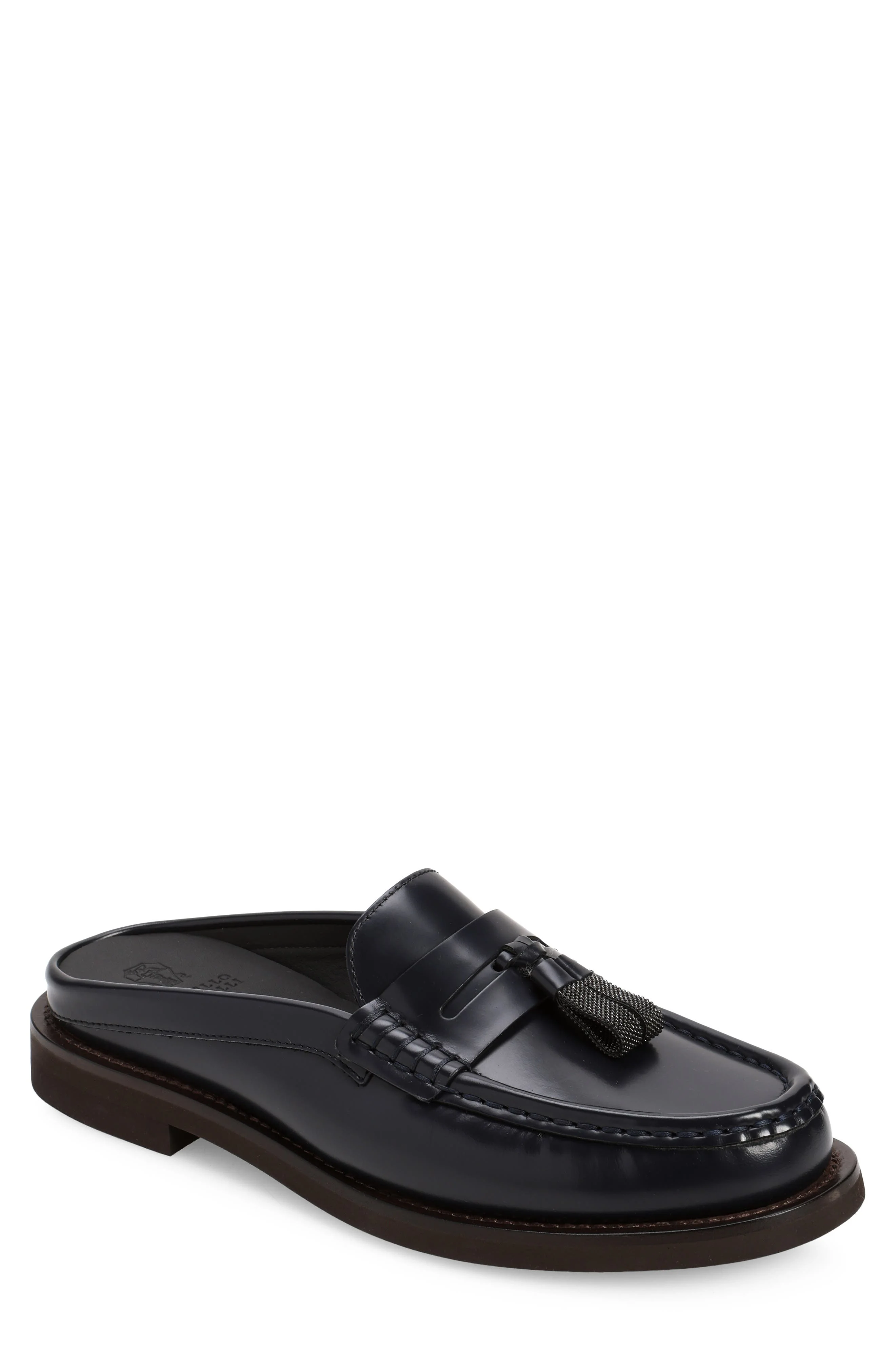 A monili tassel provides the branding signature on this Italian calfskin loafer made for even easier wearing in mule silhouette. Leather upper, lining and sole Made in Italy Designer Shoes