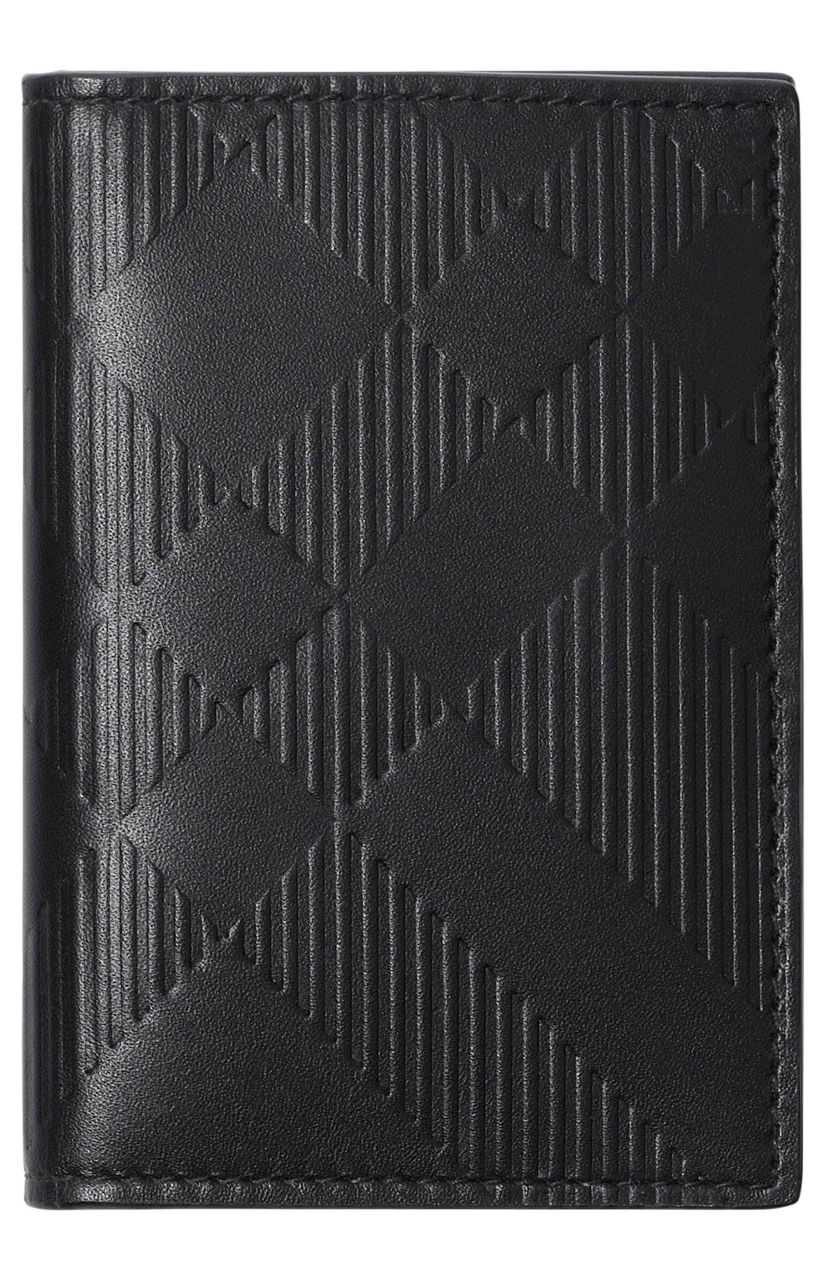 The label's instantly recognizable check done on the bias is embossed into the calfskin leather of this slim bifold wallet. Interior currency pocket; four card slots Leather Imported