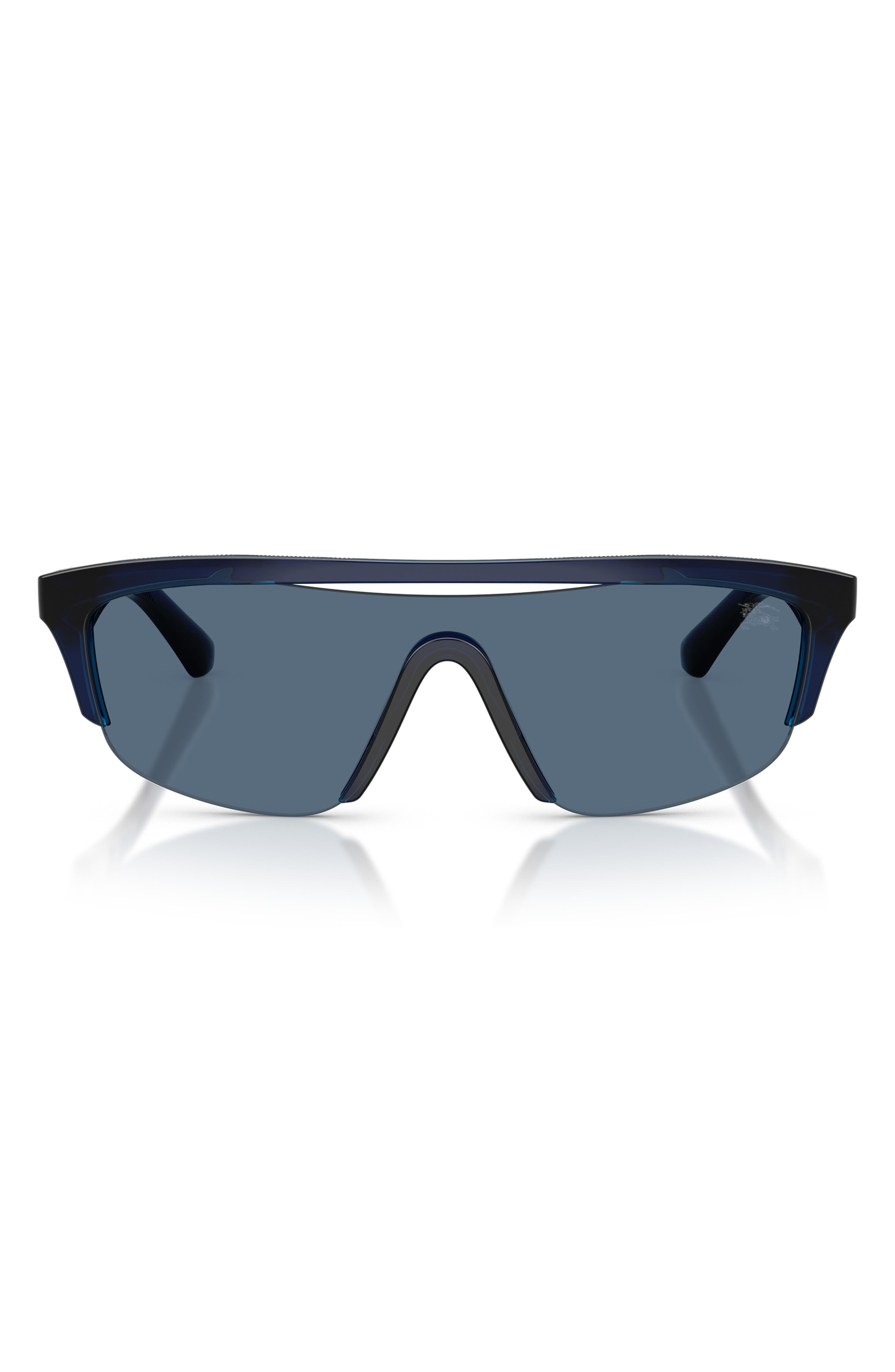 Shield-inspired frames with subtle cutout detailing enhance the modern vibe of Italian-made sunglasses fitted with full-coverage UV-protective lenses. 140mm lens width; 145mm temple length 100% UV protection Plastic Made in Italy
