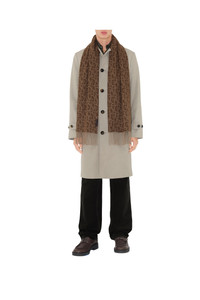 A cashmere scarf woven with a B charm pattern. Made in Scotland at a mill founded in 1797, the fabric is washed in local spring water and brushed with teasels – dried flowers that are drawn along the surface of the cashmere to ‘raise’ the cloth, creating a natural lustre and ultra-soft finish.||Rectangular|Fringing at both ends|Leather tag with embossed Burberry lettering 168 x 30cm/66.1 x 11.8in 100% cashmere Trim: 100% calf leather Specialist dry clean Made in Scotland