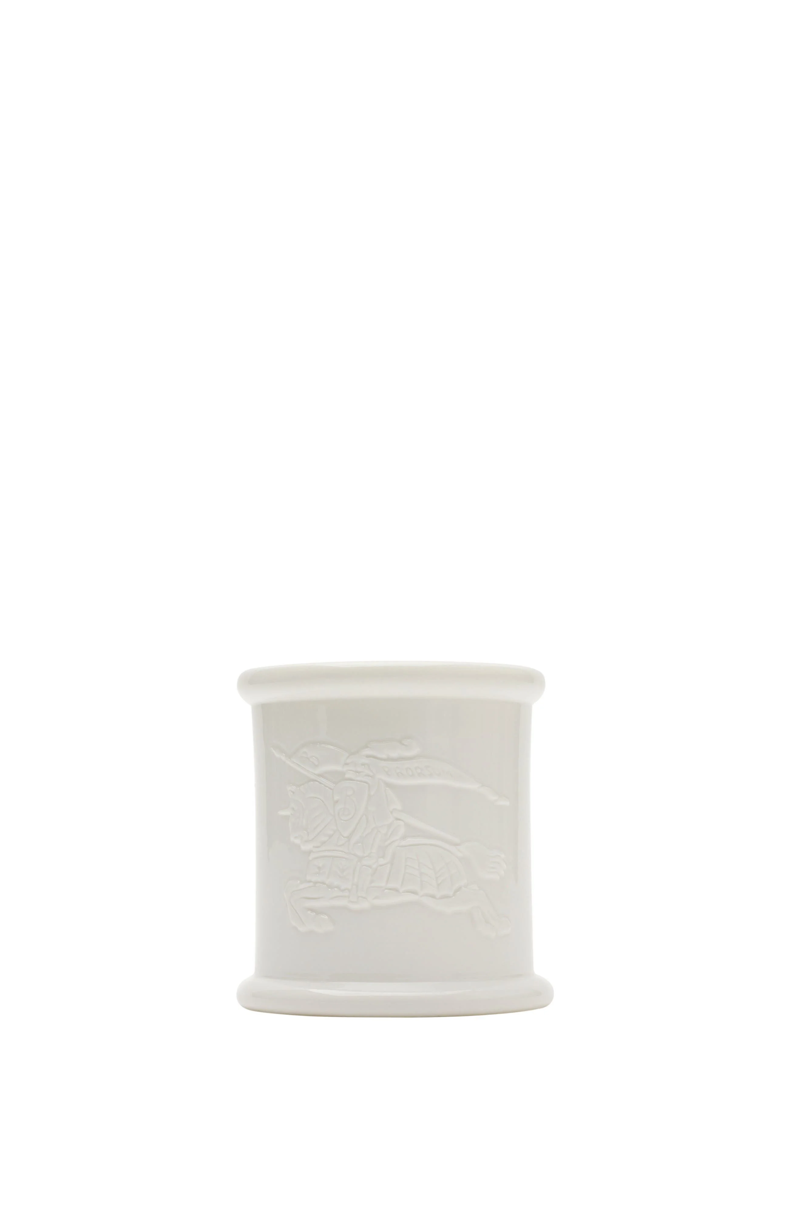 Burberry expands its home fragrance collection with the addition of a small candle housed in a bespoke vessel. Scented with a blend of pink grapefruit and floral cuttings from a botanic garden, the wax is hand-poured into the bone china vessel – each hand-cast at a ceramics workshop in Stoke-on-Trent, a region renowned for its pottery craft. Crafted with a raised Equestrian Knight Design motif and Burberry logo at the base. Ideal for gifting, the custom designed presentation box is wrapped in a Burberry Check sleeve with an Equestrian Knight Design sticker to denote the scent inside.||Top notes: pink grapefruit, toasted hazelnut, cream, brown sugar, passion fruit, mango, papaya|Middle notes: white flowers, Mirabilis jalapa, gurjun balsam|Base notes: blonde tobacco, sandalwood, birchwood, ambergris, cedarwood|Burn time: 40 hours Candle dimensions: 9 x 8.5cm/3.5 x 3.4in Box dimensions: 10 x 9 x 9cm/3.9 x 3.5 x 3.5in Filled candle weight: 400g Candle: 70% paraffin wax, 30% vegetable derived triglycerides Vessel: 100% bone china Made in England