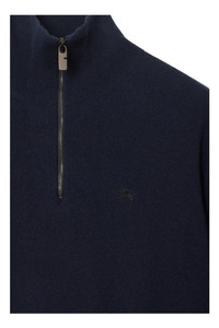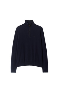A funnel-neck sweater in lightweight cashmere blend jersey. The style is knitted to a slim fit and embroidered with a tonal Equestrian Knight Design.||Zip closure|Rib-knit trims|Embroidered Equestrian Knight Design Slim fit: this style is cut to a fitted silhouette. Fits true to size, take your normal size. Length: 66.5cm/26.2in (size UK M) Model’s height: 190cm/6ft 3in. Model wears size UK M 96% cashmere, 3% polyamide, 1% elastane Trims: 95% cashmere, 4% polyamide, 1% elastane Specialist dry clean Imported