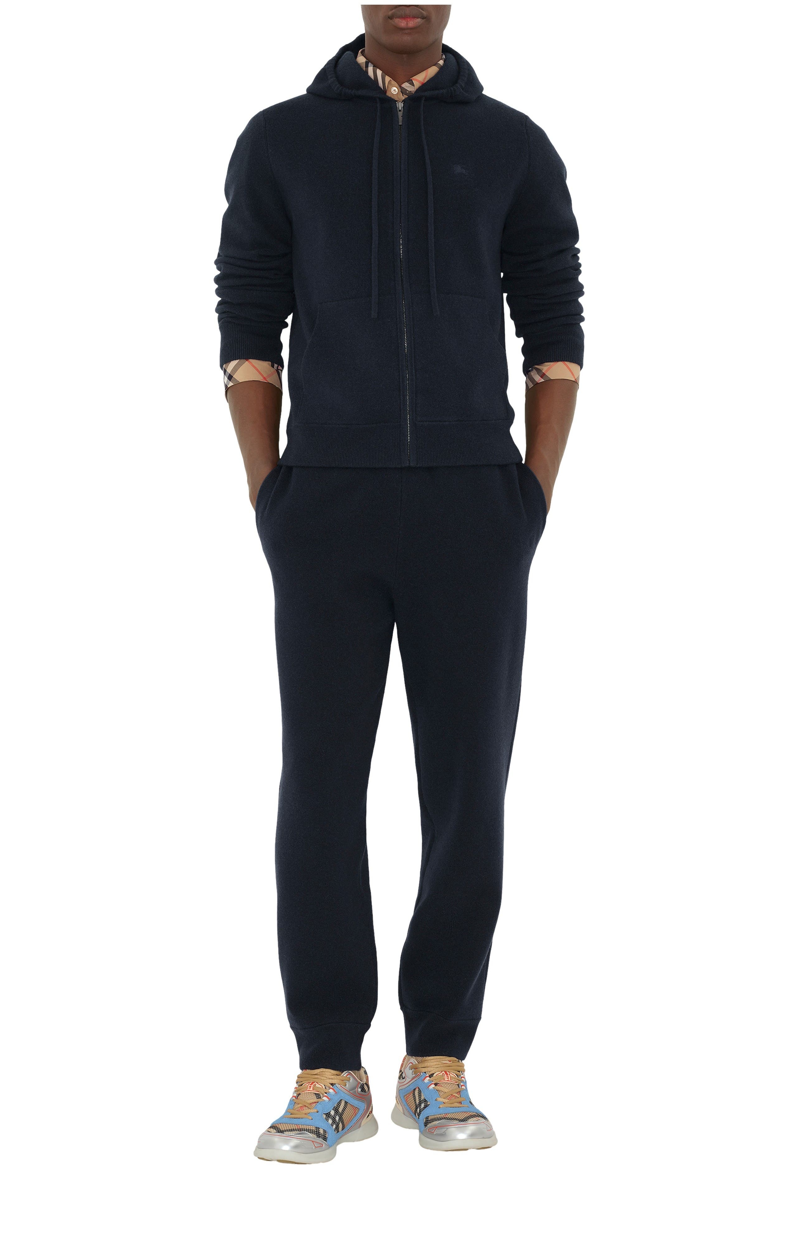A zip hoodie knitted from a cashmere blend, cut to a slim fit. The design is embroidered with our Equestrian Knight Design and is subtly detailed with a Burberry Check trim inside the neckline.||Zip closure|Drawcord hood|Pouch pockets|Rib-knit trims|Embroidered Equestrian Knight Design at chest Slim fit: this style is cut to a fitted silhouette. Fits true to size, take your normal size. Length: 65.5cm/25.8in (size UK M) Model’s height: 190cm/6ft 3in. Model wears size UK M 90% cashmere, 9% polyamide, 1% elastane Trims: 90% cashmere, 9% polyamide, 1% elastane Specialist dry clean Imported