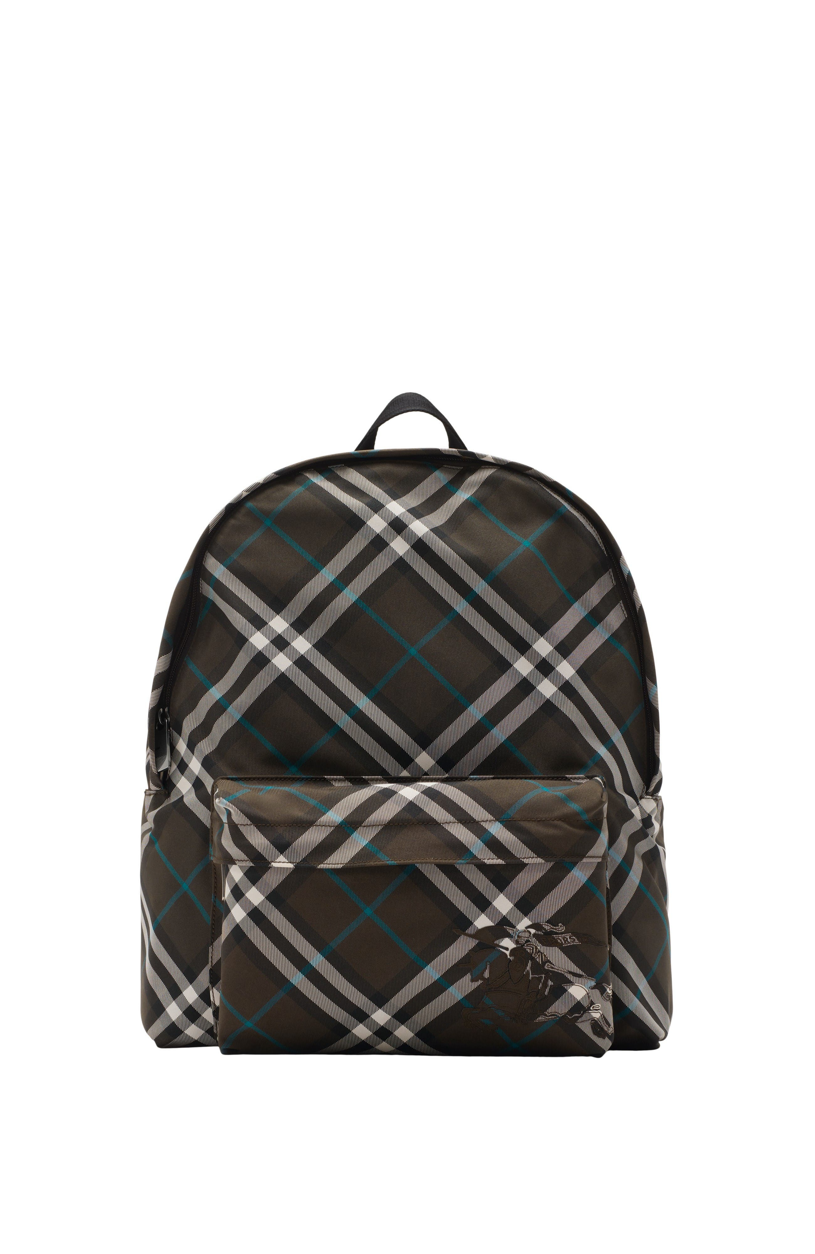 A backpack woven in the Burberry Check with a matching lining and Equestrian Knight Design applique. The design features B-cut zip pulls and an exterior pocket designed to hold documents or a laptop. Part of Burberry Classics, wardrobe foundations with a unique Burberry slant.||Webbing top handle|Adjustable B buckle shoulder straps|Zip closure|Two exterior zip pockets, two exterior side slip pockets|Appliqued Equestrian Knight Design at front pocket|Burberry Check lining|Comes with a dust bag 35 x 14 x 41cm/13.8 x 5.5 x 16.1in Outer: 92% polyester, 8% polyurethane Lining: 92% polyester, 8% polyurethane Imported