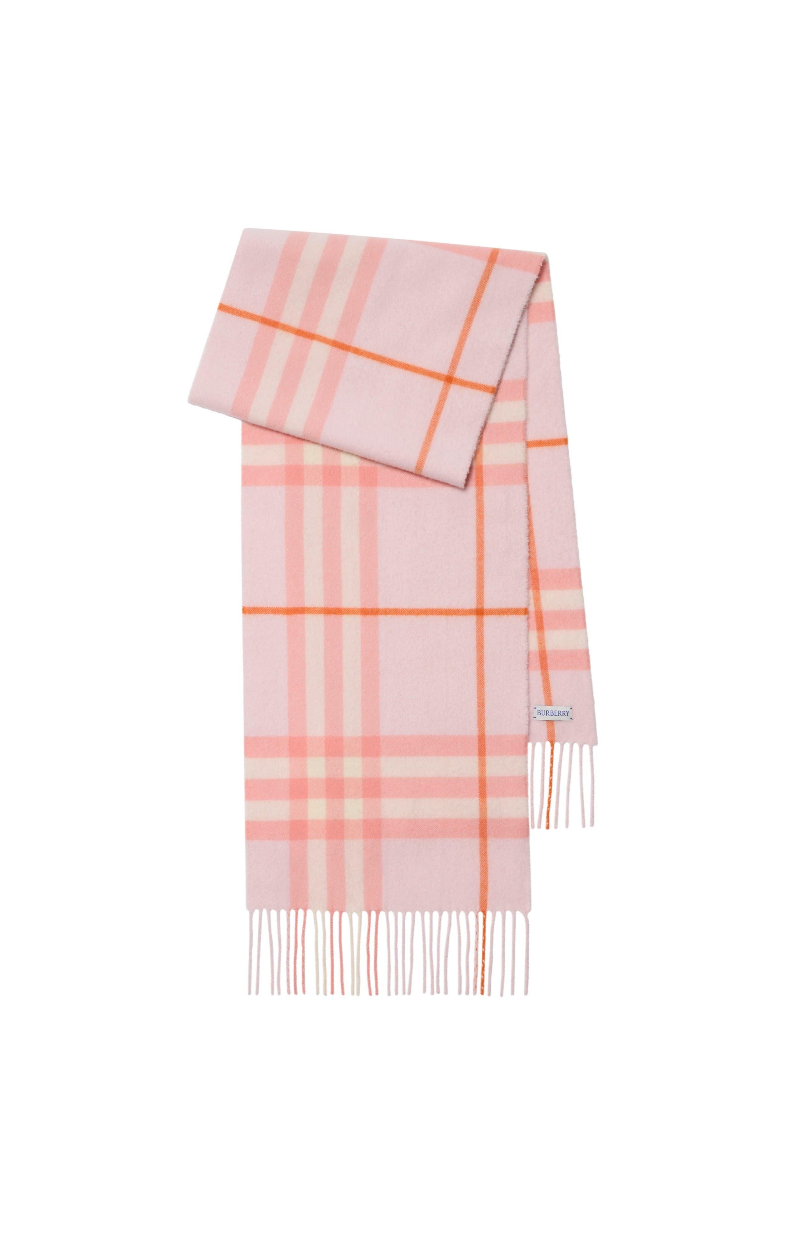 The iconic Burberry Check cashmere scarf, made in Scotland at a mill founded in 1797. Woven on traditional looms, the scarf takes more than 30 steps to complete. The fabric is washed in local spring water and brushed with teasels – dried flowers that are drawn along the surface of the cashmere to 'raise' the cloth, creating a natural lustre and ultra-soft finish.||Rectangular|Fringing at both ends 168 x 30cm/66.1 x 11.8in 100% cashmere Specialist dry clean Made in Scotland