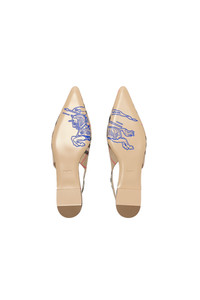 Point-toe slingback ballerinas made in Italy from stretch linen printed with the Burberry Check. The style features an adjustable strap and a quilted insole for comfort.||Adjustable buckled strap|Pointed toe|Quilted insole|Engraved Burberry lettering at buckle|Equestrian Knight Design at sole|Comes with a dust bag Upper: 97% linen, 3% elastane Lining: 100% sheep leather Sole: 100% leather Made in Italy