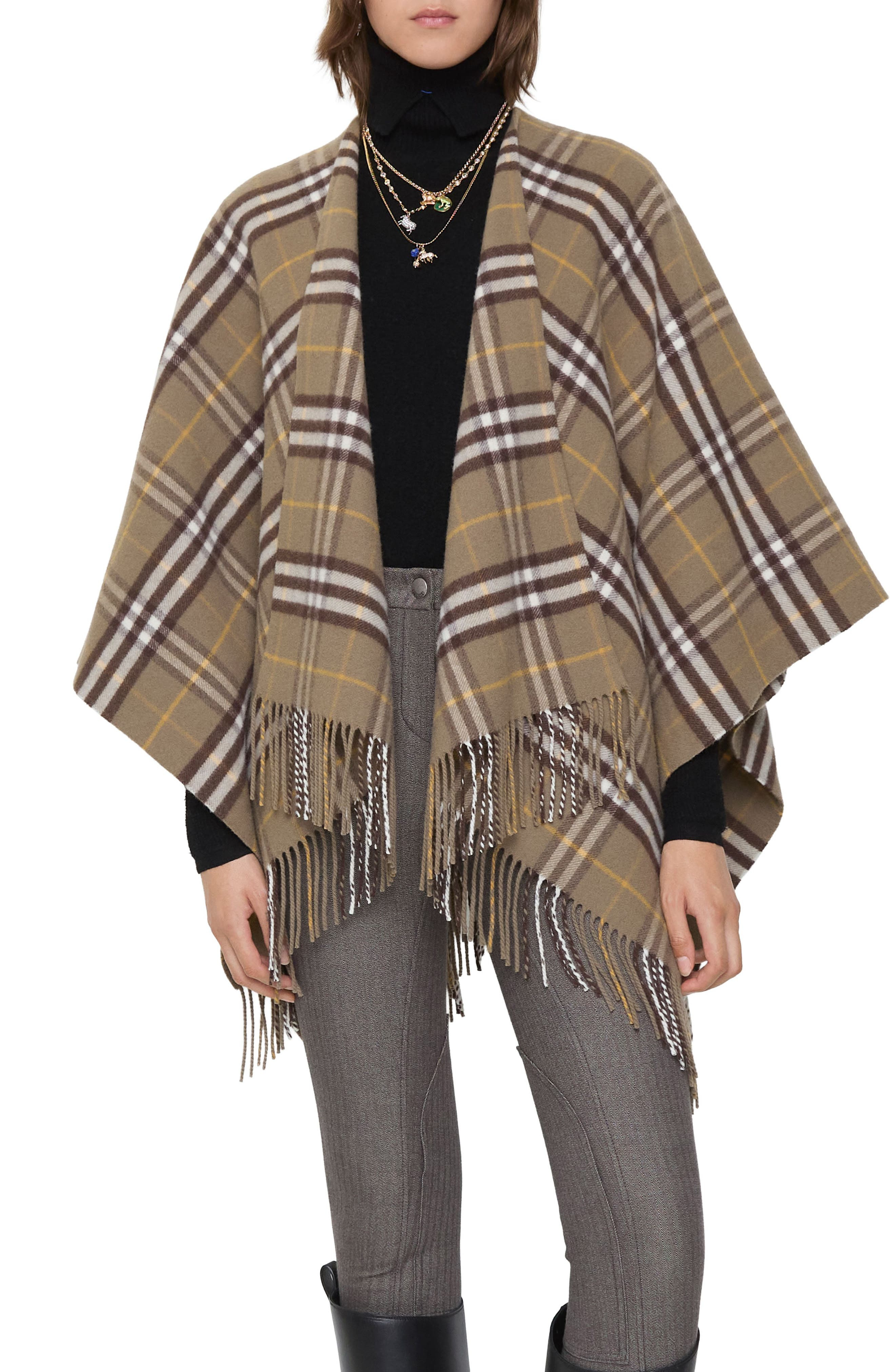 burberry Check Double Face Wool & Cashmere Cape in Vole at Nordstrom