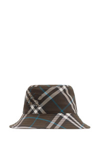 A bucket hat made in Italy, woven in twill with the Burberry Check. The design is unlined and appliqued with the Equestrian Knight Design. Part of Burberry Classics, wardrobe foundations with a unique Burberry slant. 100% polyester Trim: 100% polyester Wipe clean with a cloth, do not use solvents Made in Italy