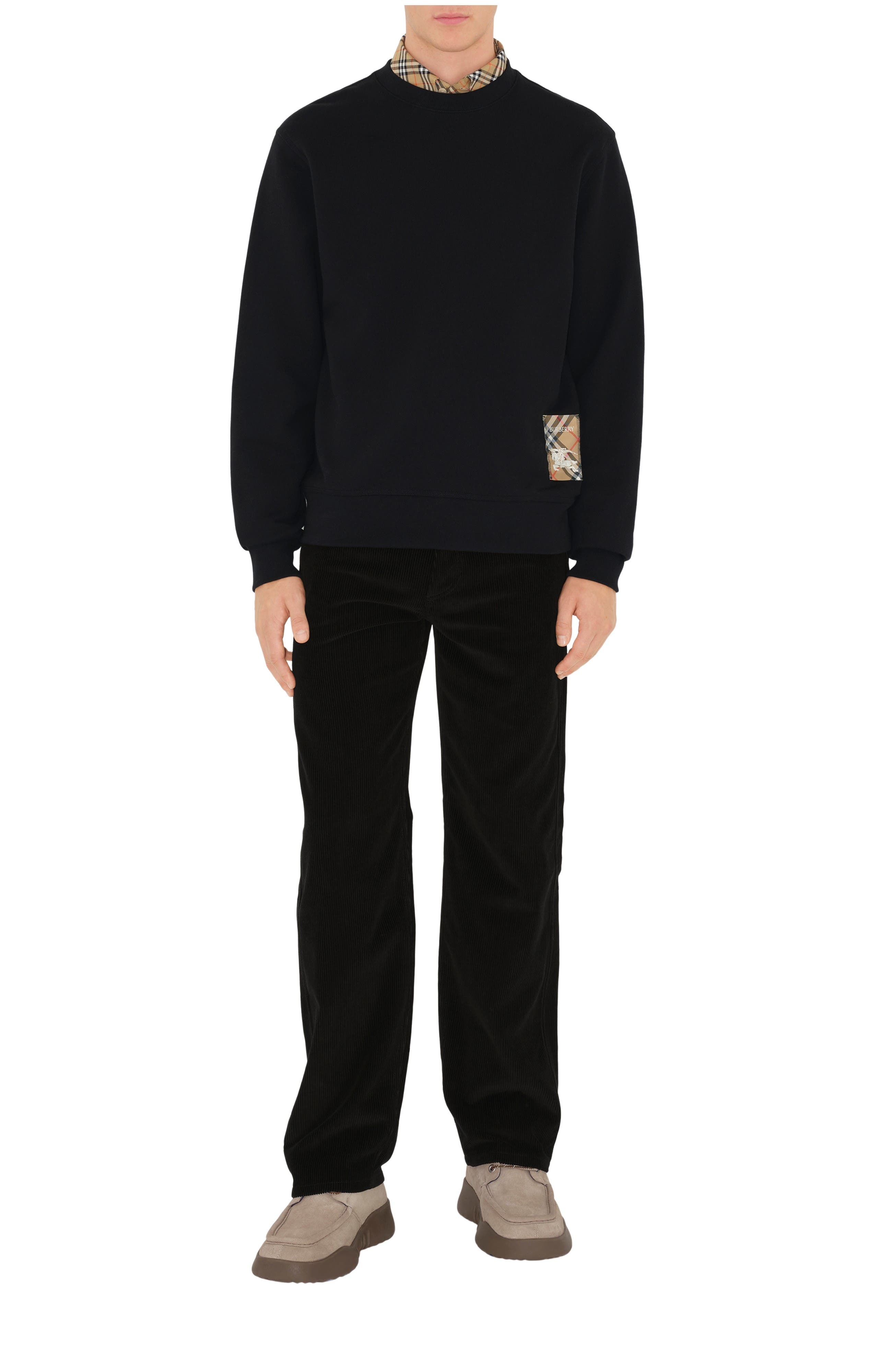 burberry Check Label Cotton Sweatshirt in Black at Nordstrom