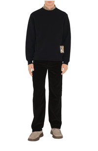 A sweatshirt made from lightweight loop-back cotton, knitted to a relaxed fit. Reworking the label from our signature trench coats, the crew-neck style features an appliqued patch woven with the Burberry Check, logo and Equestrian Knight Design. ||Rib-knit trims |Appliqued Burberry Check label at side Relaxed fit: a looser cut than our regular fit. Length: 69.5cm/27.4in (size UK M) 100% cotton Trim: 99% cotton, 1% elastane Machine wash Made in Portugal