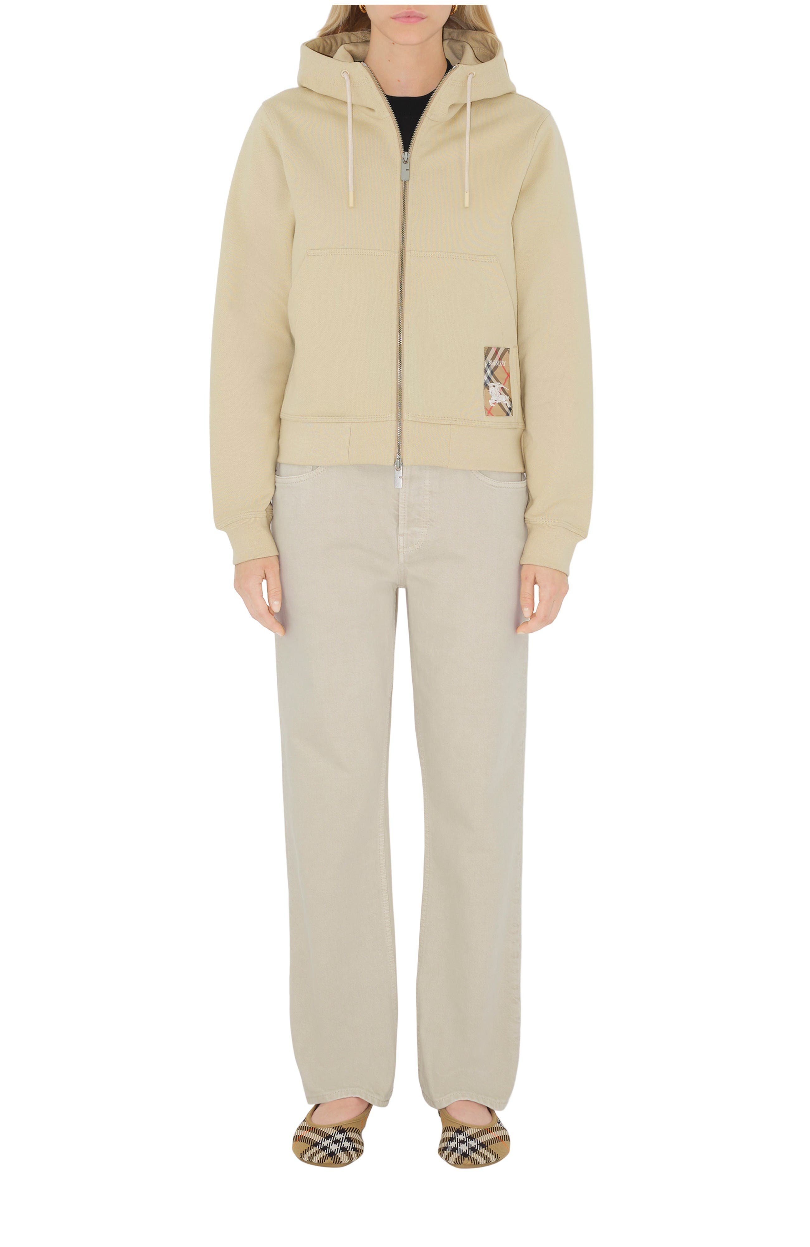 A zip hoodie in lightweight loop-back cotton. The style features an appliqued patch woven with the Burberry Check, logo and Equestrian Knight Design. ||Zip closure|Drawstring hood|Pouch pockets |Rib-knit trims |Appliqued Burberry Check label at pocket Regular fit. Fits true to size, take your normal size. Length: 59cm/23.2in (size UK S) Model’s height: 177cm/5ft 10in. Model wears size UK S 100% cotton Trim: 99% cotton, 1% elastane Machine wash Made in Portugal