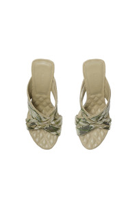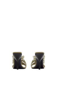 Mules made in Italy from leather with metallic mesh straps printed with the Burberry Check. Set on a stiletto heel, the design features a quilted leather insole with Burberry lettering.||Almond-shaped toe|Quilted leather insole|Stiletto heel|Comes with a dust bag Heel height: 9cm/3.5in Upper: 100% brass Lining: 100% sheep leather Sole: 100% leather Made in Italy