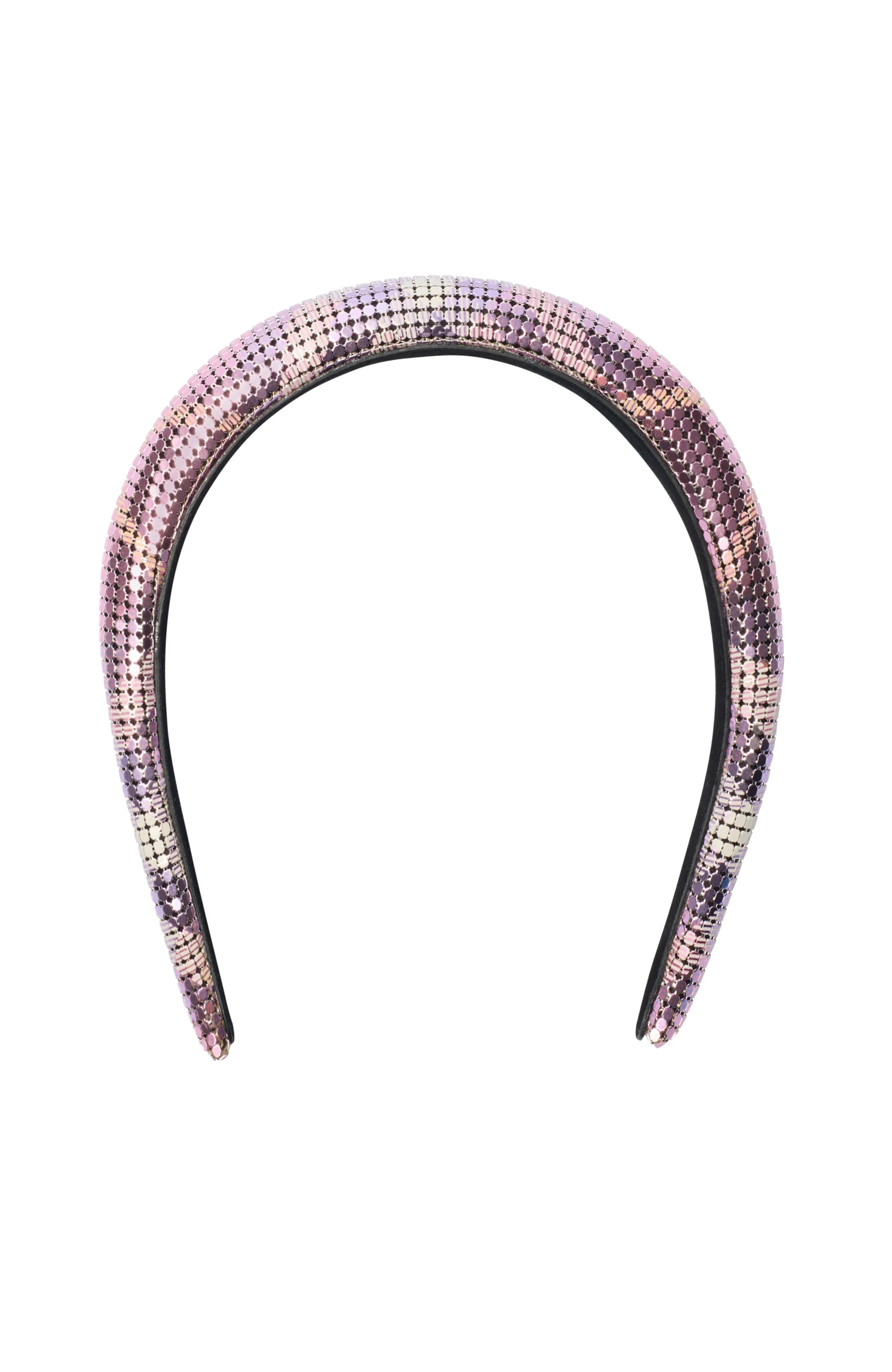 A headband made in Italy from metallic mesh printed with the Burberry Check. The design is lined with soft suede.||Embossed Burberry lettering at inner 100% brass Trim: 100% goat suede Made in Italy
