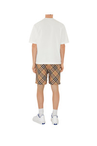 Drawcord shorts in Italian-woven twill patterned with the Burberry Check and appliqued with our Equestrian Knight Design. Cut to a relaxed fit, the style features secure zip pockets. ||Zip closure |Elasticated drawcord waist |Side zip pockets, back press-stud flap pocket |Appliqued Equestrian Knight Design at back pocket Relaxed fit: a looser cut than our regular fit. Inside leg length: 16cm/6.3in (size UK M) Model’s height: 185cm/6ft 1in. Model wears size UK M 100% polyester Pocket lining: 100% polyamide Specialist dry clean Imported