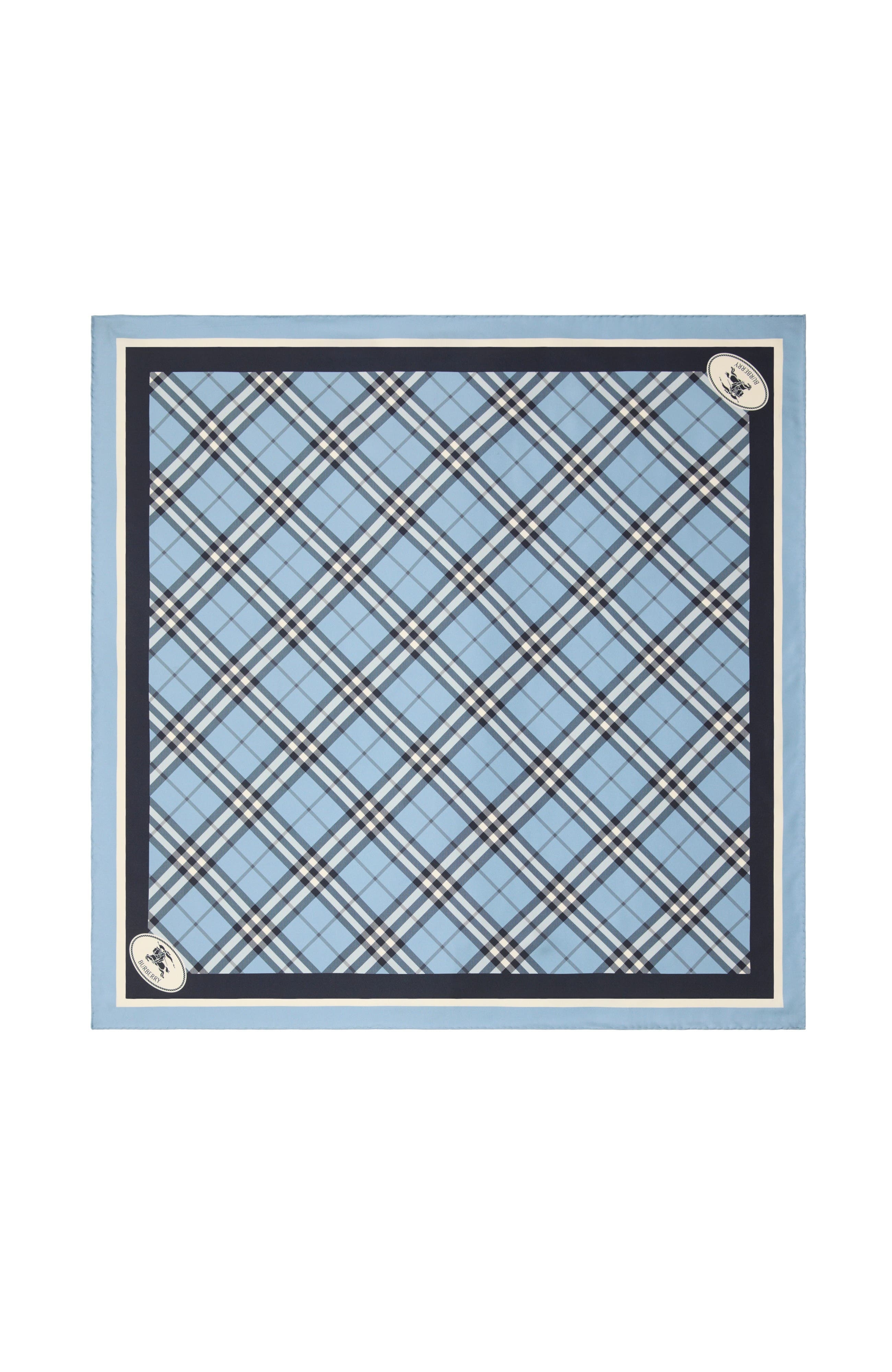 A square scarf made in Italy from silk twill, printed with the Burberry Check. The design is framed with contrasting stripes and our Knight stamp, an archival motif first seen on Burberry bags in the 1980s. ||Square|Hand-rolled edges|Printed Burberry lettering at corners 90 x 90cm/35.4 x 35.4in 100% silk Specialist dry clean Made in Italy