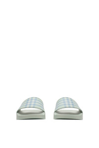 A pair of slides made in Italy, printed with the Burberry Check in a seasonal colourway. The ridged sole is debossed with our logo.||Contoured insole|Embossed Burberry lettering at side|Comes with a dust bag Upper: 100% polyurethane Sole: 60% polyurethane, 40% thermoplastic polyurethane Made in Italy