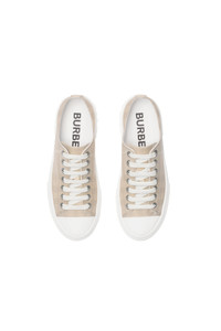 A pair of low-top sneakers in a nylon blend woven with a seasonal Burberry Check. The Italian-made style is set on a chunky rubber sole with an embossed logo.||Lace-up closure|Embossed Burberry lettering at heel and sole|Comes with a dust bag Upper: 97% polyamide, 3% polyurethane Trim: 70% polyester, 30% brass Lining: 68% cotton, 25% sheep leather, 5% polyester, 2% polyurethane Sole: 100% rubber Made in Italy