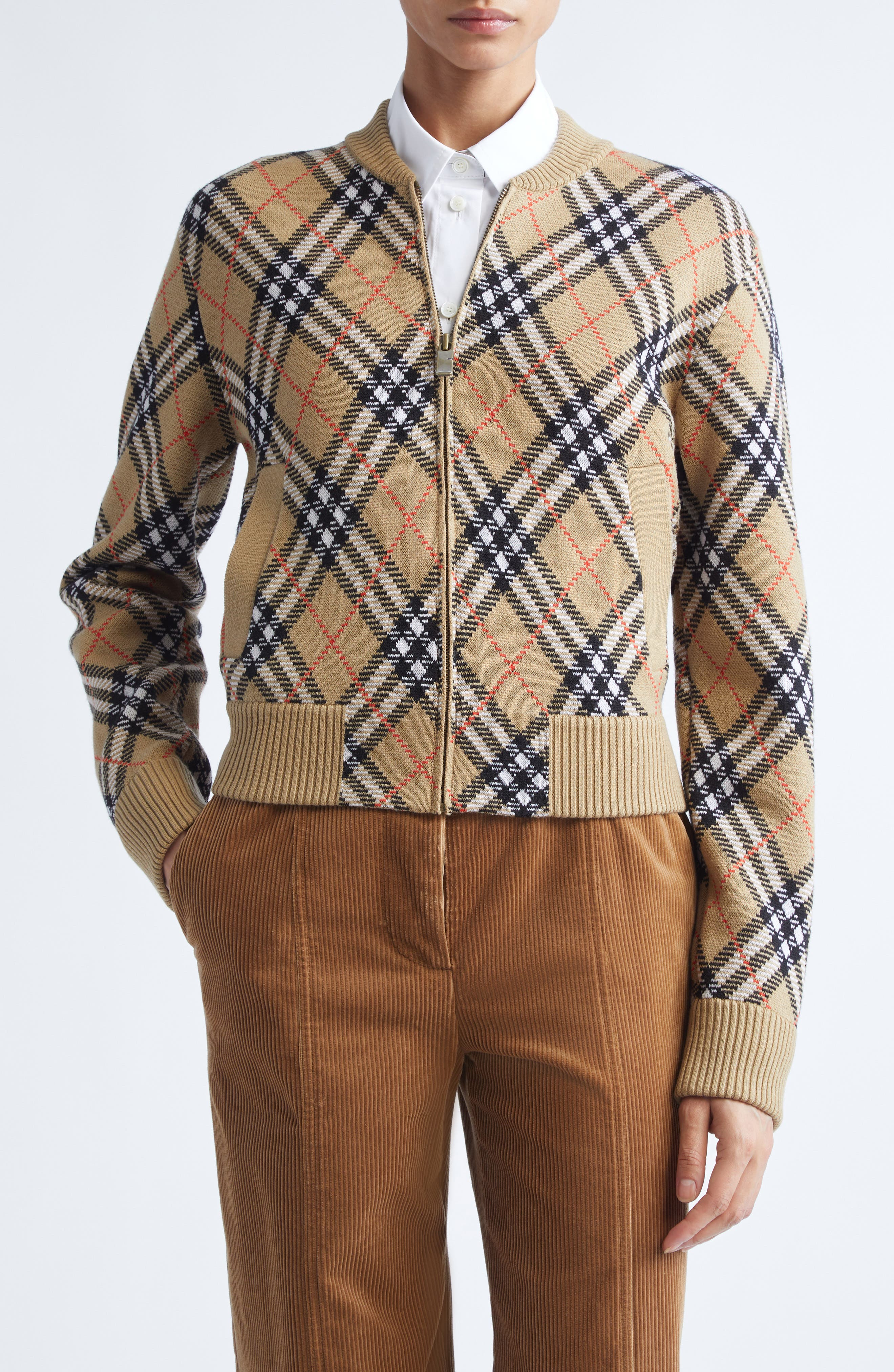 burberry Check Sweater Jacket in Sand Ip Check at Nordstrom