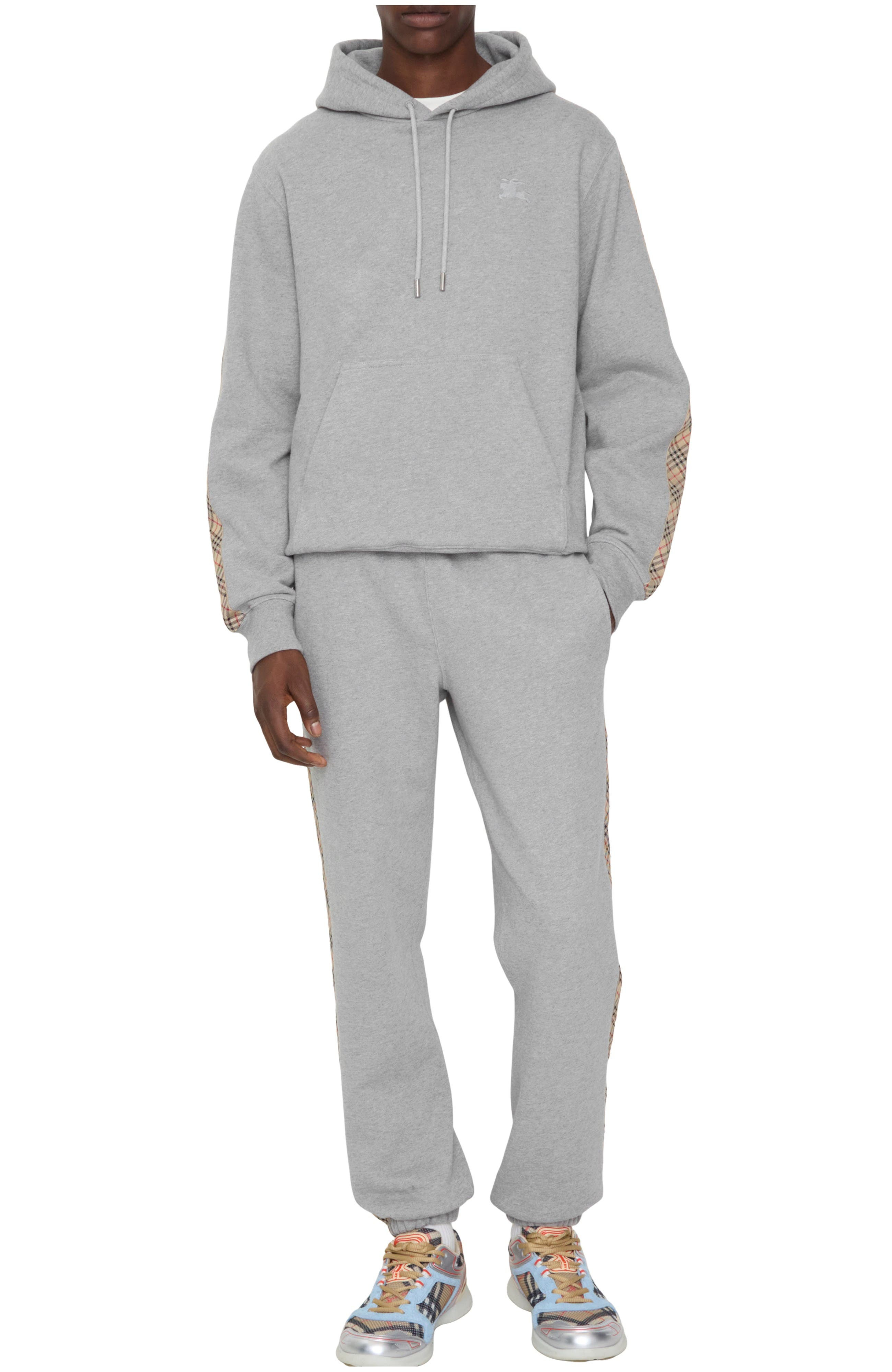 burberry Check Trim Cotton Jogging Pants in Pale Grey Melange at Nordstrom