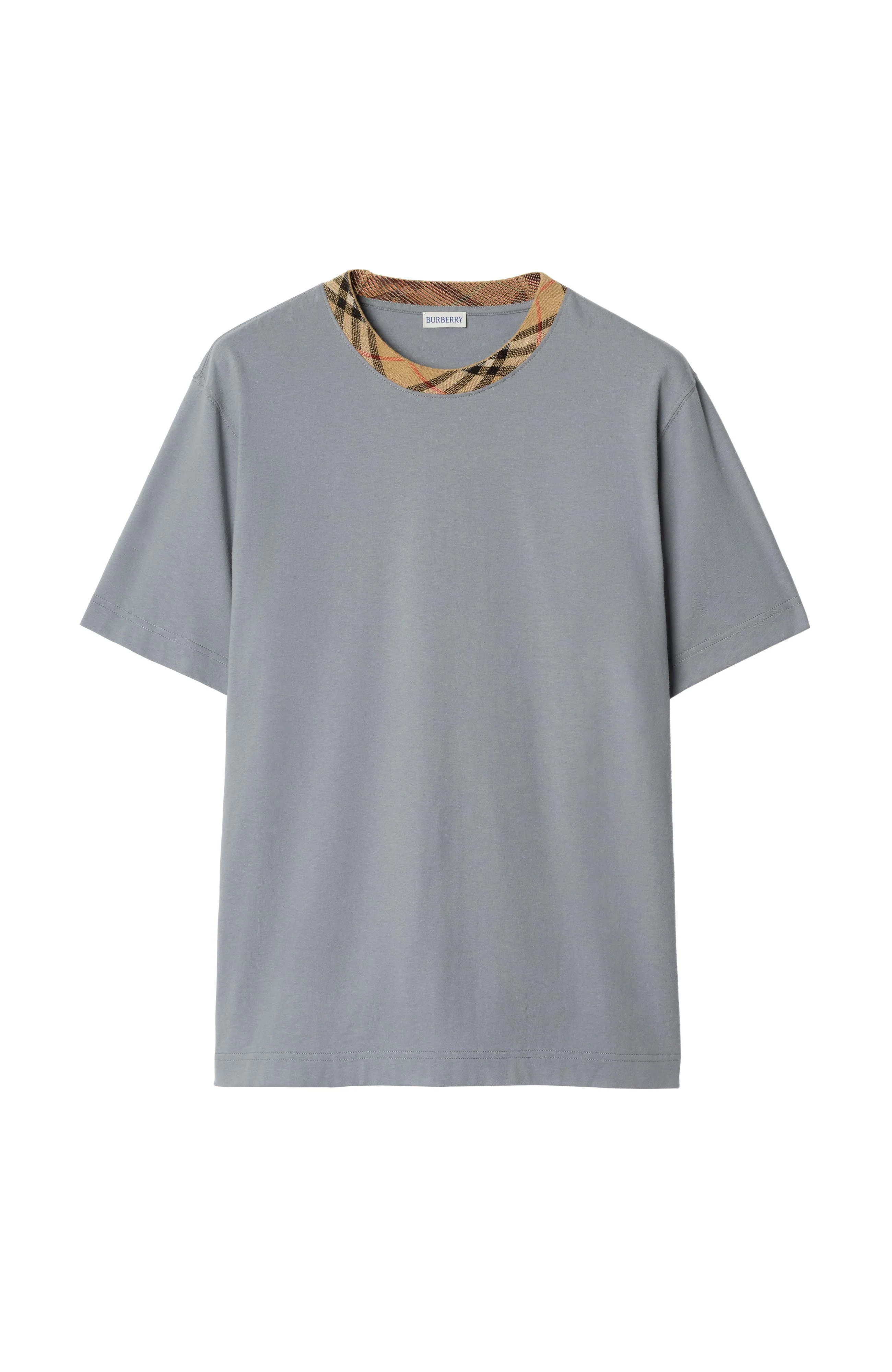 A crew-neck T-shirt in cotton jersey, cut to a relaxed fit. The collar is detailed with Burberry Check taping in our signature sand beige.||Rib-knit neckline Relaxed fit: a looser cut than our regular fit. Length: 74cm/29.1in (size UK L) 100% cotton Trim: 91% cotton, 6% polyamide, 3% elastane Machine wash Made in Portugal