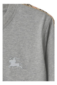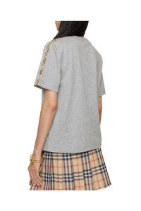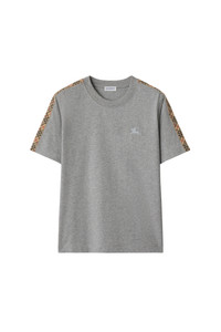 A T-shirt in lightweight cotton jersey, cut to a regular fit. The style is framed with Burberry Check taping in our signature archive beige colourway.||Rib-knit neckline|Embroidered Equestrian Knight Design at chest Regular fit. Fits true to size, take your normal size. Length: 61cm/24in (size UK S) Model's height: 175cm/5ft 9in. Model wears size UK S 100% cotton Trims: 97% cotton, 3% elastane; 100% polyester Machine wash Made in Portugal