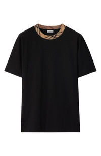 Portuguese-cotton jersey offers all-day comfort in this relaxed T-shirt popped with Burberry's instantly recognizable checks, bringing heritage character to this closet staple. Crewneck Short sleeves 100% cotton, with 91% cotton, 7% polyamide, 2% elastane trim Machine wash, line dry Imported Designer Clothing