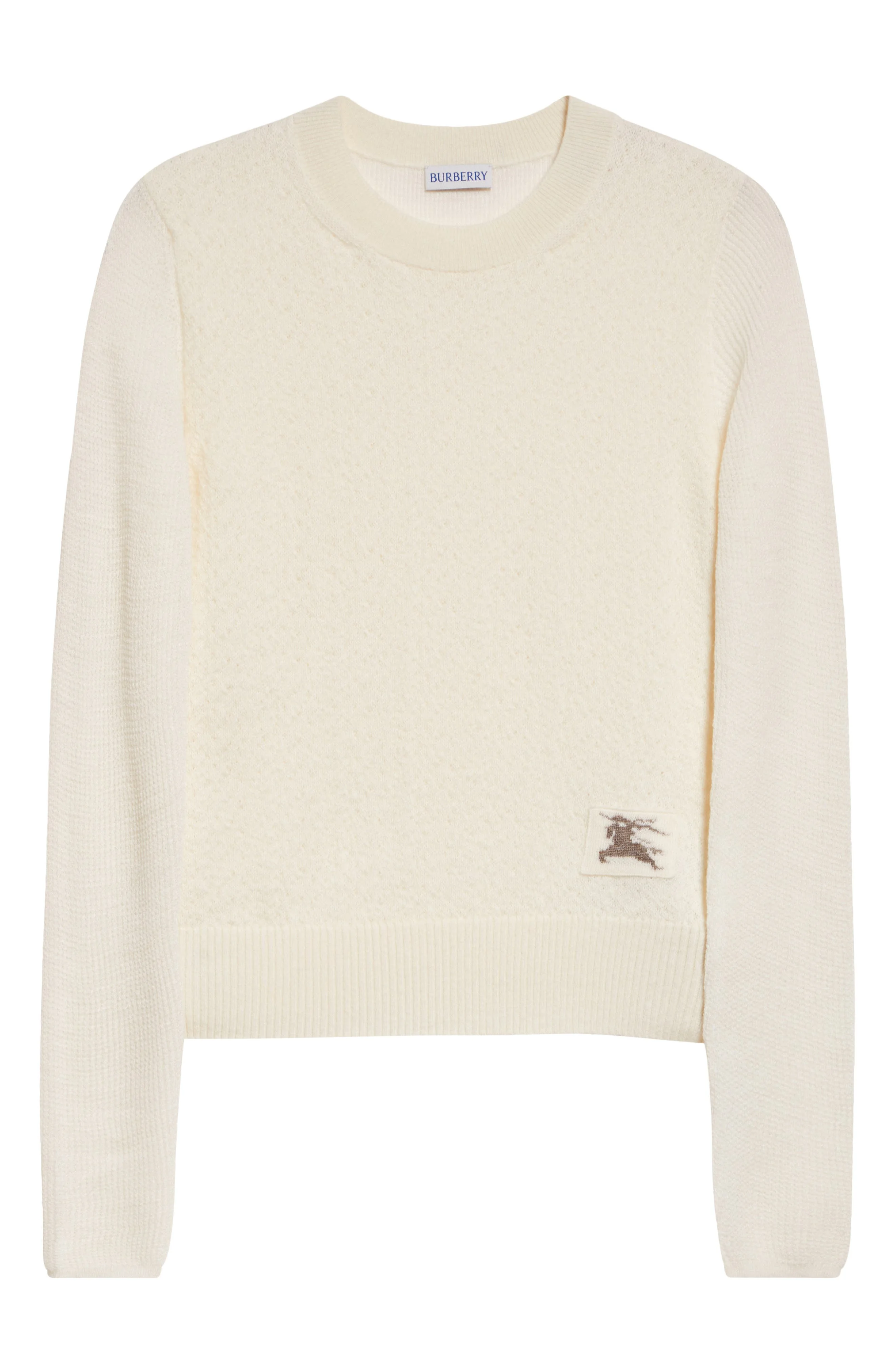 The maison's iconic Equestrian Knight Design—first introduced in 1901—gives heritage character to this trim crewneck sweater warmed in an alpaca-rich blend. 21" length Crewneck Long sleeves Ribbed cuffs and hem 70% polyester, 30% alpaca Dry clean Made in Italy Designer Clothing
