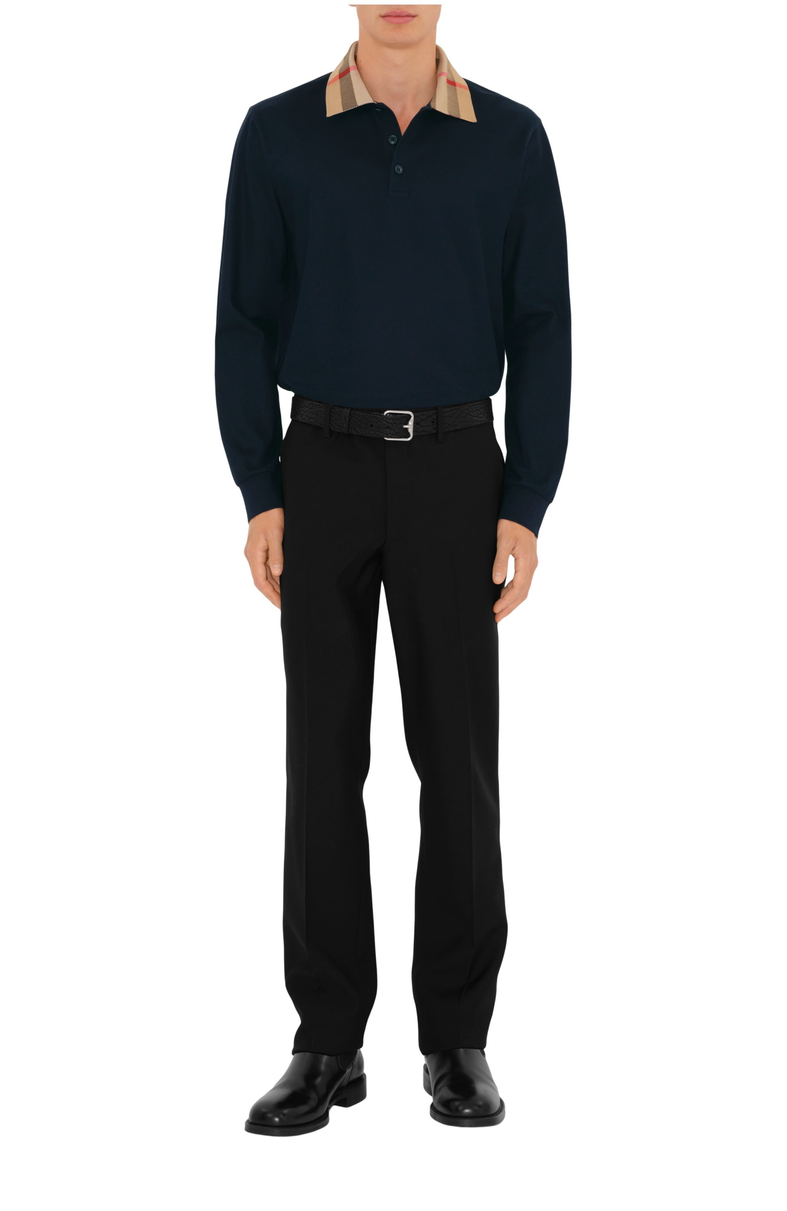 A long-sleeved polo shirt in cotton pique, topped with a knitted Burberry Check collar. The design is cut to a slim fit. ||Button placket|Rib-knit cuffs Slim fit: this style is cut to a fitted silhouette. Fits true to size, take your normal size. Length: 74.5cm/29.3in (size UK L) Model’s height: 186cm/6ft 1in. Model wears size UK L 100% cotton Trims: 97% cotton, 3% elastane; 63% polyester, 31% polyamide, 6% elastane Machine wash Made in Portugal