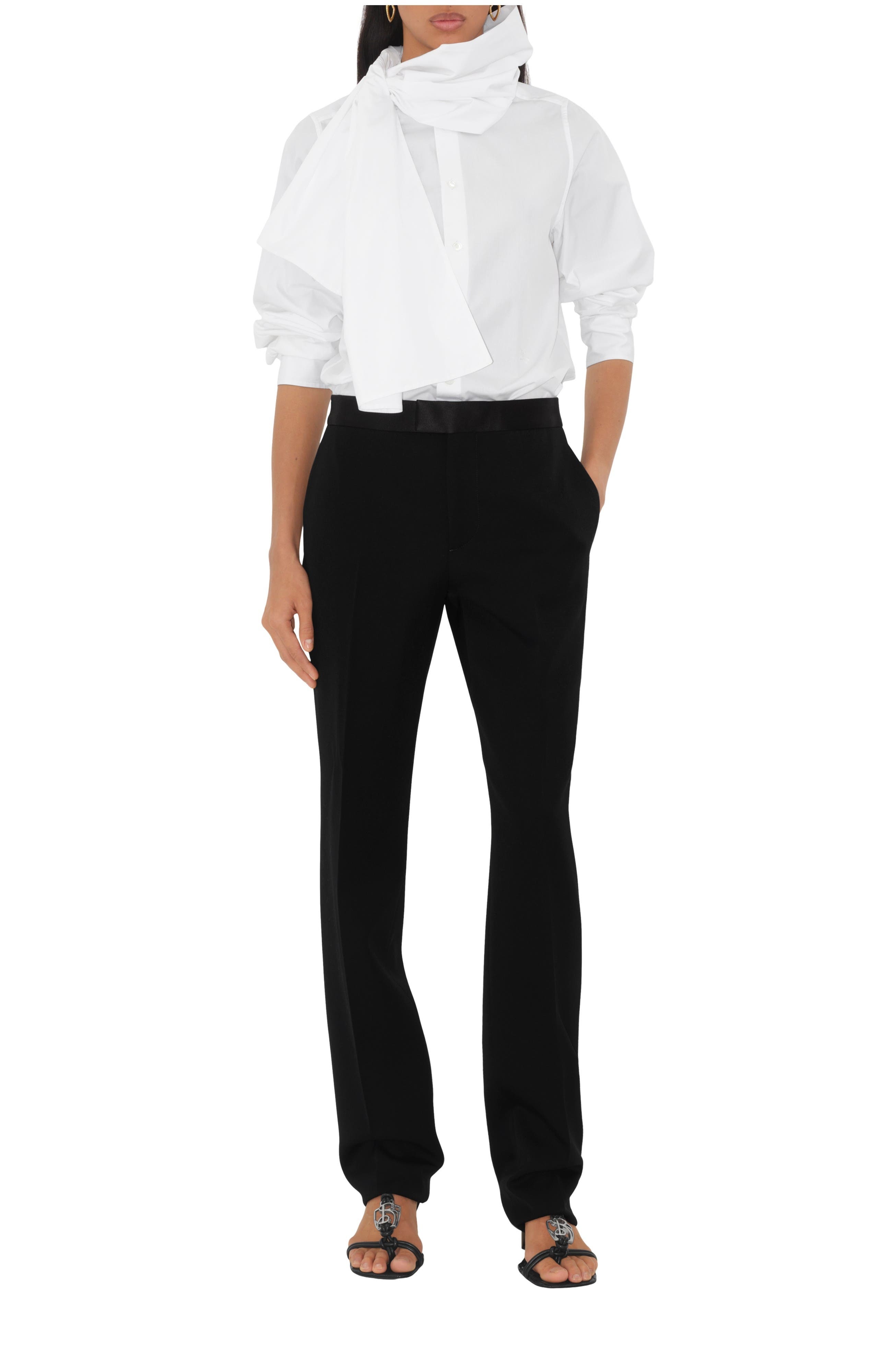 A shirt in Italian-woven cotton poplin, cut to a slim fit. The design is topped with a scarf detail that can be draped around the neck or tied into a bow.||Button closure|Grandad collar|Single-button cuffs|Straight hem Slim fit: this style is cut to a fitted silhouette. Fits true to size, take your normal size. Length: 70.5cm/27.8in (size UK 8) Model’s height: 176cm/5ft 9in. Model wears size UK 8 100% cotton Buttons: mother-of-pearl Specialist dry clean Imported