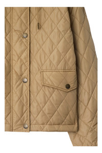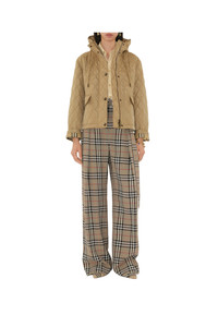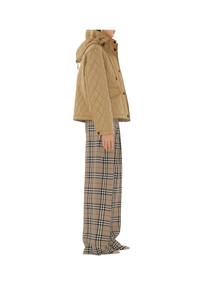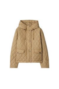 A quilted jacket made from lightweight nylon, cut to a regular fit with a drawcord hood. The cropped style is lined with Burberry Check cotton twill in our signature sand colourway.||Two-way zip and press-stud closure|Drawcord hood|Side press-stud flap patch pockets|Press-stud cuffs|Burberry Check lining|Equestrian Knight Design tag at side|Comes with a garment bag Regular fit. Fits true to size, take your normal size. Length: 56cm/22.1in (size UK S) Outer: 100% polyamide Trim: 100% cotton Lining: 100% cotton Filling: 100% polyester fibres Pockets: 100% cotton Specialist dry clean Imported