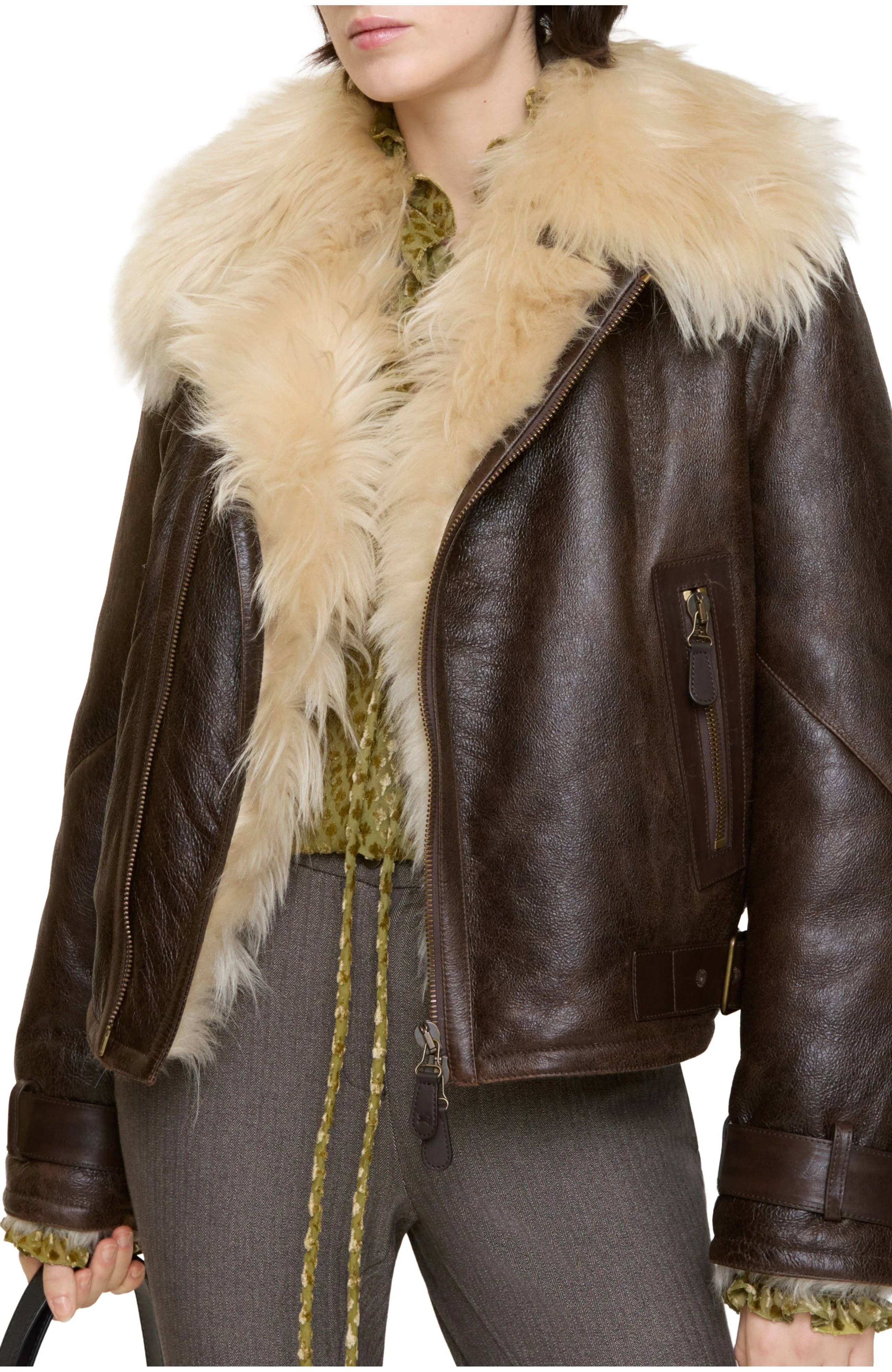 Cropped Shearling Aviator Jacket