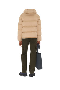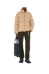 A puffer jacket filled with goose down and insulating fibres, appliqued with our Knight stamp – an archival motif from the 1980s. Detachable sleeves switch the design from a jacket to a gilet. The style is cut to a relaxed fit and features a Burberry Check wool lining at the detachable hood and collar.||Two-way zip closure|Detachable drawcord hood|Detachable sleeves|Side zip pockets|Drawcord hem|Storm cuffs|Burberry Check lining at hood and collar|Silicone patch with Equestrian Knight Design at sleeve|Comes with a garment bag Relaxed fit: a looser cut than our regular fit. Length: 72.7cm/28.6in (size UK M) Model’s height: 187cm/6ft 2in. Model wears size UK M Outer: 100% polyester bonded to 100% polyester Trim: 79% polyester, 20% polyamide, 1% elastane Lining: 100% polyamide Hood and collar lining: 100% wool Filling: 90% goose down, 10% goose feathers Wadding: 100% polyester fibres Machine wash Imported