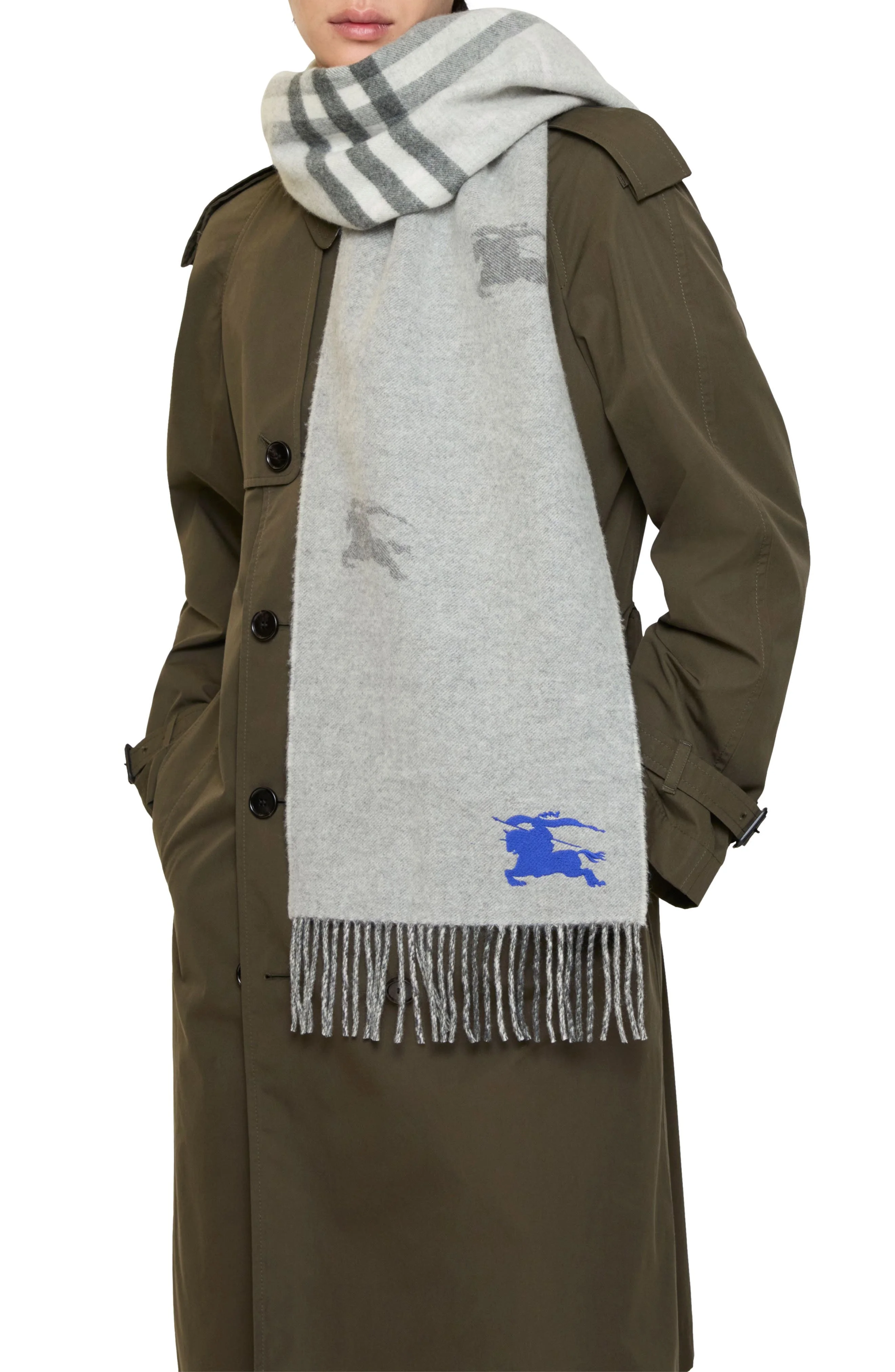 burberry EKD Check Reversible Double Face Cashmere Fringe Scarf in Mitten Grey at Nordstrom