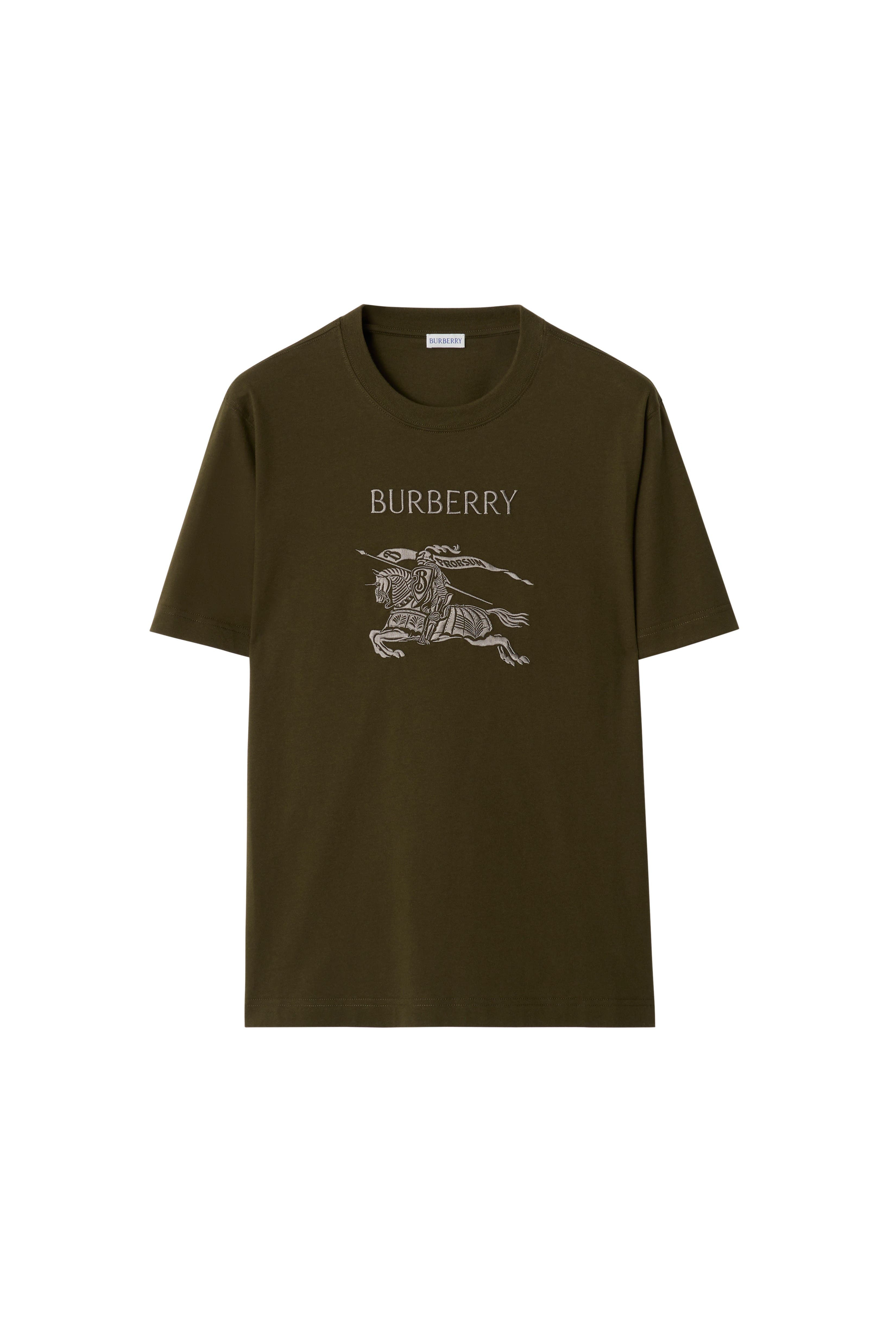 A crew-neck T-shirt in midweight cotton jersey, cut for a slim fit. The style is embroidered with our logo and the Equestrian Knight Design in lustrous thread.||Rib-knit neckline|Embroidered Equestrian Knight Design at chest Slim fit: this style is cut to a fitted silhouette. Fits true to size, take your normal size. Length: 73cm/28.7in (size UK L) Model’s height: 185cm/6ft 1in. Model wears size UK L 100% cotton Trims: 97% cotton, 3% elastane; 100% viscose Machine wash Made in Portugal