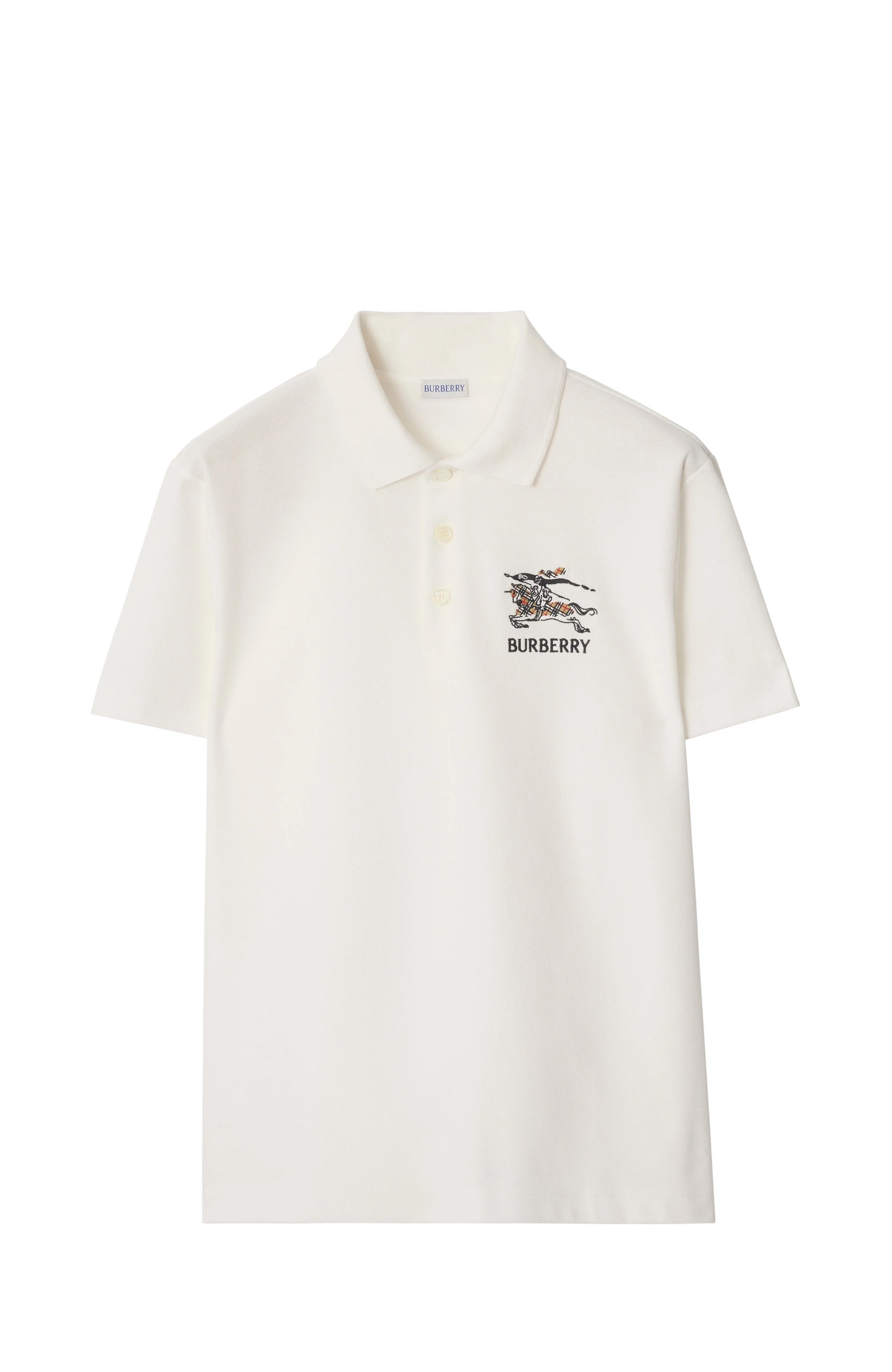 A polo shirt in lightweight cotton pique, cut for a slim fit. The style is illustrated with our logo, Equestrian Knight Design, and Burberry Check in chain-stitch embroidery.|| Button placket|Rib-knit collar|Embroidered Burberry lettering at chest Slim fit: this style is cut to a fitted silhouette. Fits true to size, take your normal size. Length: 71.5cm/28.2in (size UK L) Model’s height: 184cm/6ft. Model wears size UK L 100% cotton* Trim: 97% cotton, 3% elastane Buttons: mother-of-pearl Machine wash Made in Portugal *The main material of this product contains at least 70% cotton, all of which is organically grown.