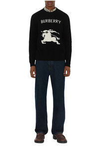 An Italian-made sweater in soft wool cashmere, knitted with a contrasting Equestrian Knight Design and logo. The crew-neck style is cut to a regular fit.||Rib-knit trims|Knitted Burberry lettering at front Regular fit. Fits true to size, take your normal size. Length: 66.5cm/26.2in (size UK M) Model’s height: 188cm/6ft 2in. Model wears size UK M 71% wool, 29% cashmere Trim: 70% wool, 28% cashmere, 1% elastane, 1% polyamide Specialist dry clean Made in Italy