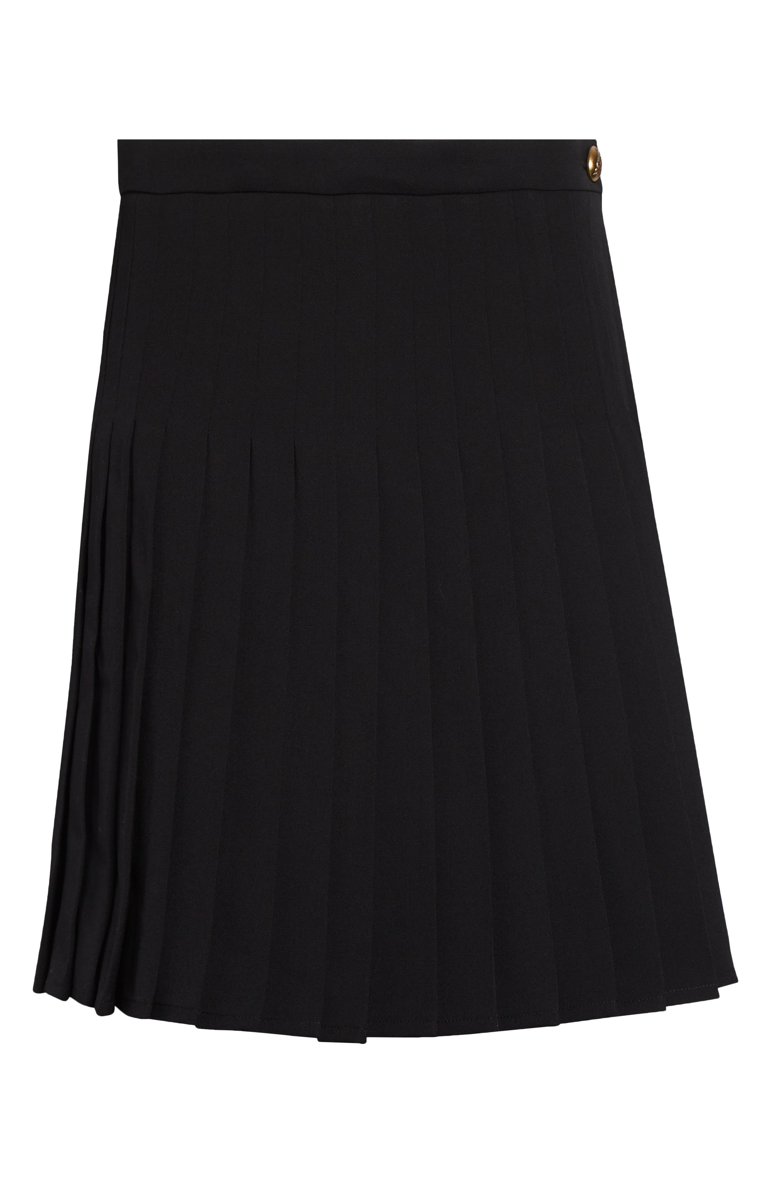 Burberry's iconic Equestrian Knight appears at the button of this school-uniform-inspired skirt made with knife-sharp pleats from wool-enriched twill. Hidden side-zip closure 55% polyester, 45% wool Dry clean Made in Italy Designer Clothing