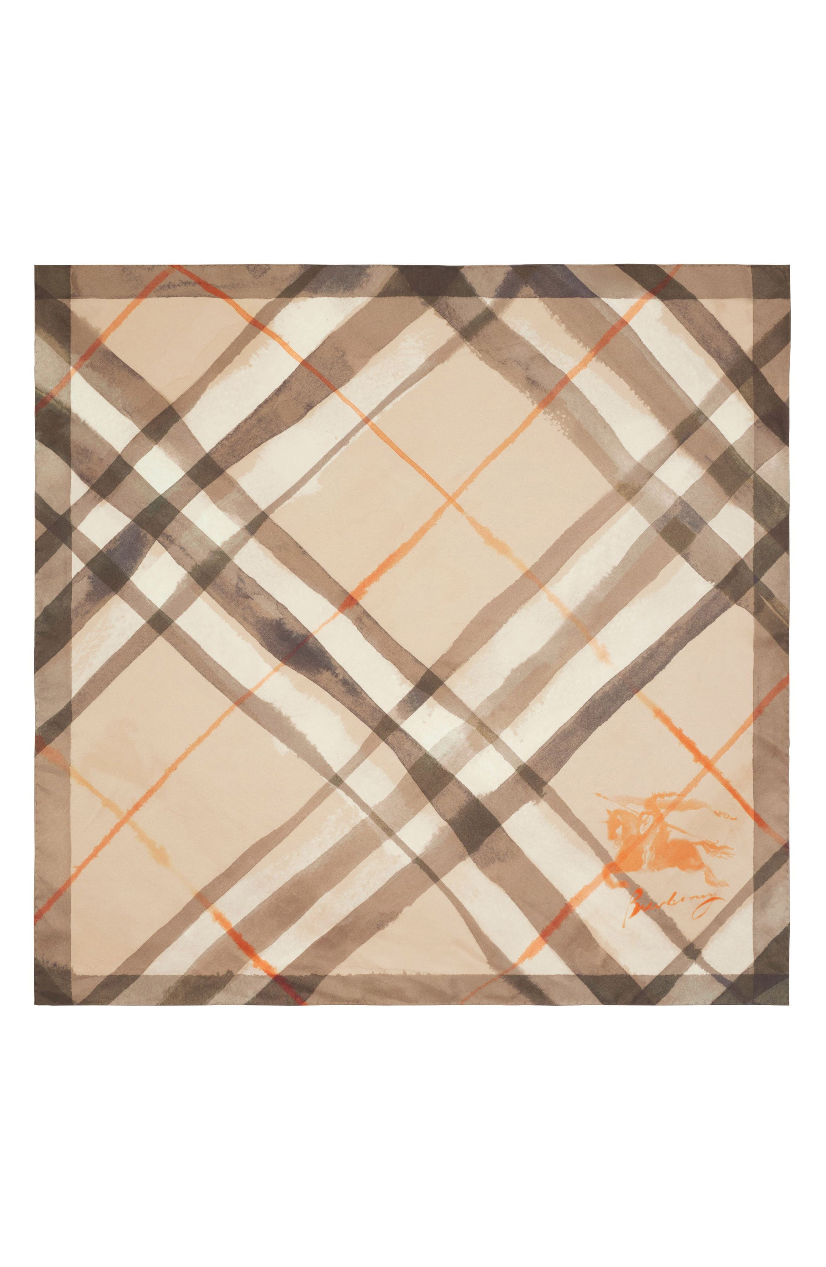 burberry Equestrian Knight Design Watercolor Check Silk Square Scarf in Birch at Nordstrom