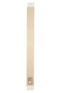Cashmere woven on traditional looms at a centuries-old Scottish mill adds to the heritage qualities of this fringe-tipped scarf featuring a checked Equestrian Knight patch. 6" x 66" 100% cashmere Made in the UK Dry clean
