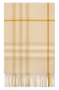 The label’s iconic archival check transforms this sweeping cashmere scarf into an instant signature, its generous fringe lending a playful finish. Knit on traditional looms and refined through more than 30 painstaking steps—from a spring water wash to a final teasel brushing—each piece gleams with natural luster and wraps you in exquisite softness. 66" x 11 1/2" 100% cashmere Dry clean Made in the UK