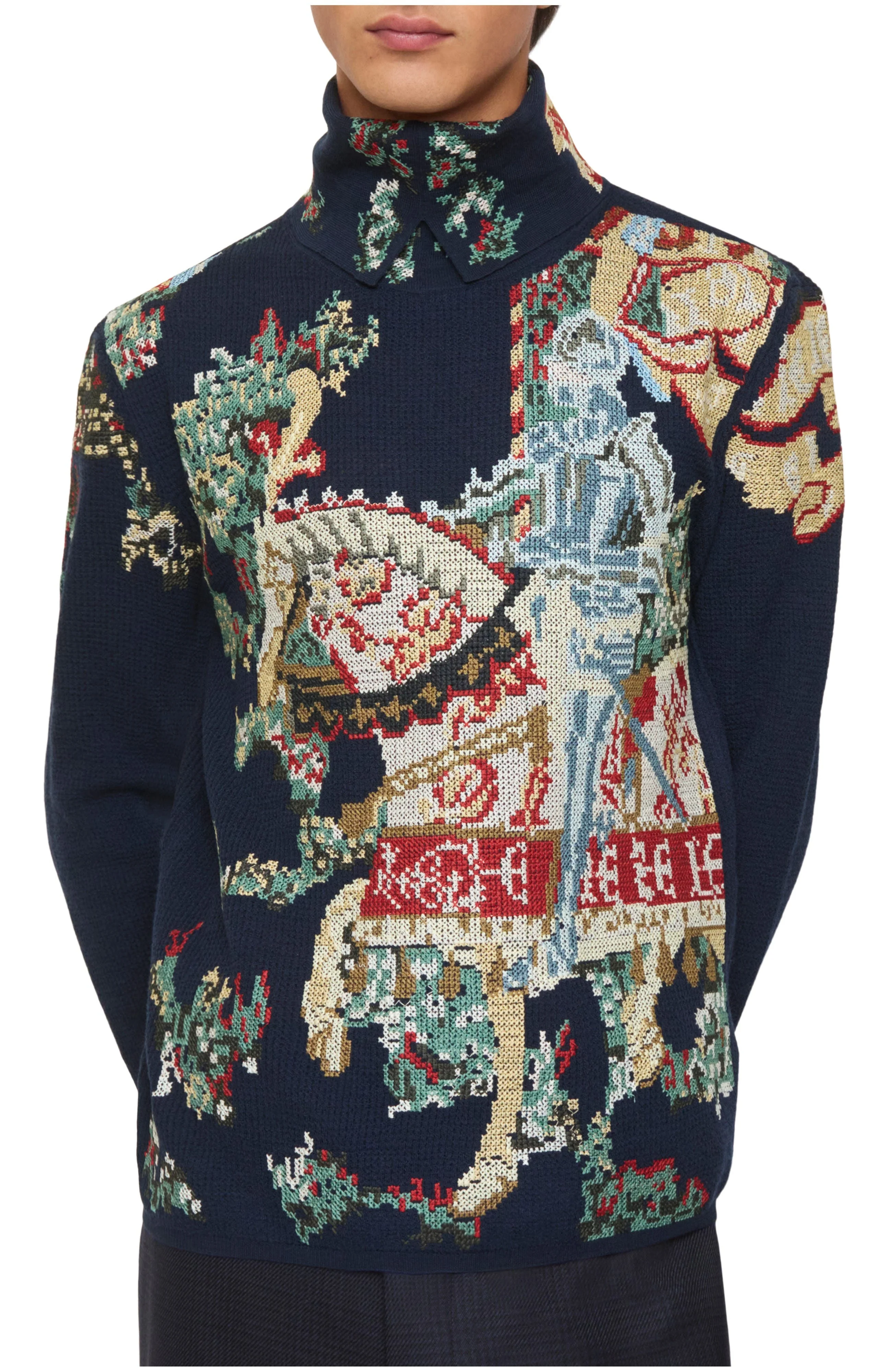 A rollneck sweater made in Italy from lightweight wool. The cross-stitched design is inspired by a 15th-century tapestry found in the collection of Montacute House, an Elizabethan mansion in Somerset. Debuted on the Burberry Winter 2025 runway and knitted to a slim fit. Slim fit: this style is cut to a fitted silhouette. Fits true to size, take your normal size. Length: 65cm/25.6in (size UK L) Model’s height: 187cm/6ft 2in. Model wears size UK L 100% wool Trim: 100% polyester Specialist dry clean Made in Italy