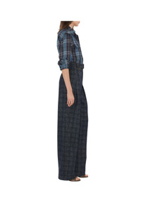 Jeans made in Italy from denim in an indigo wash, jacquard-woven with Burberry Check. The five-pocket style is cut to a loose fit with double pleats and features a matching fabric belt detailed with our signature B buckle and D ring hardware.||Hook, button and zip closure|B buckle belt|Side slip pockets, back button welt pocket|Suede patch with Equestrian Knight Design at back Wide: looser fit at hip, wide leg. Inside leg length: 84cm/33.1in (size UK 26) 100% cotton Trims: 100% lamb suede; 50% lamb suede, 50% calf leather Buttons: buffalo horn Machine wash inside out Made in Italy
