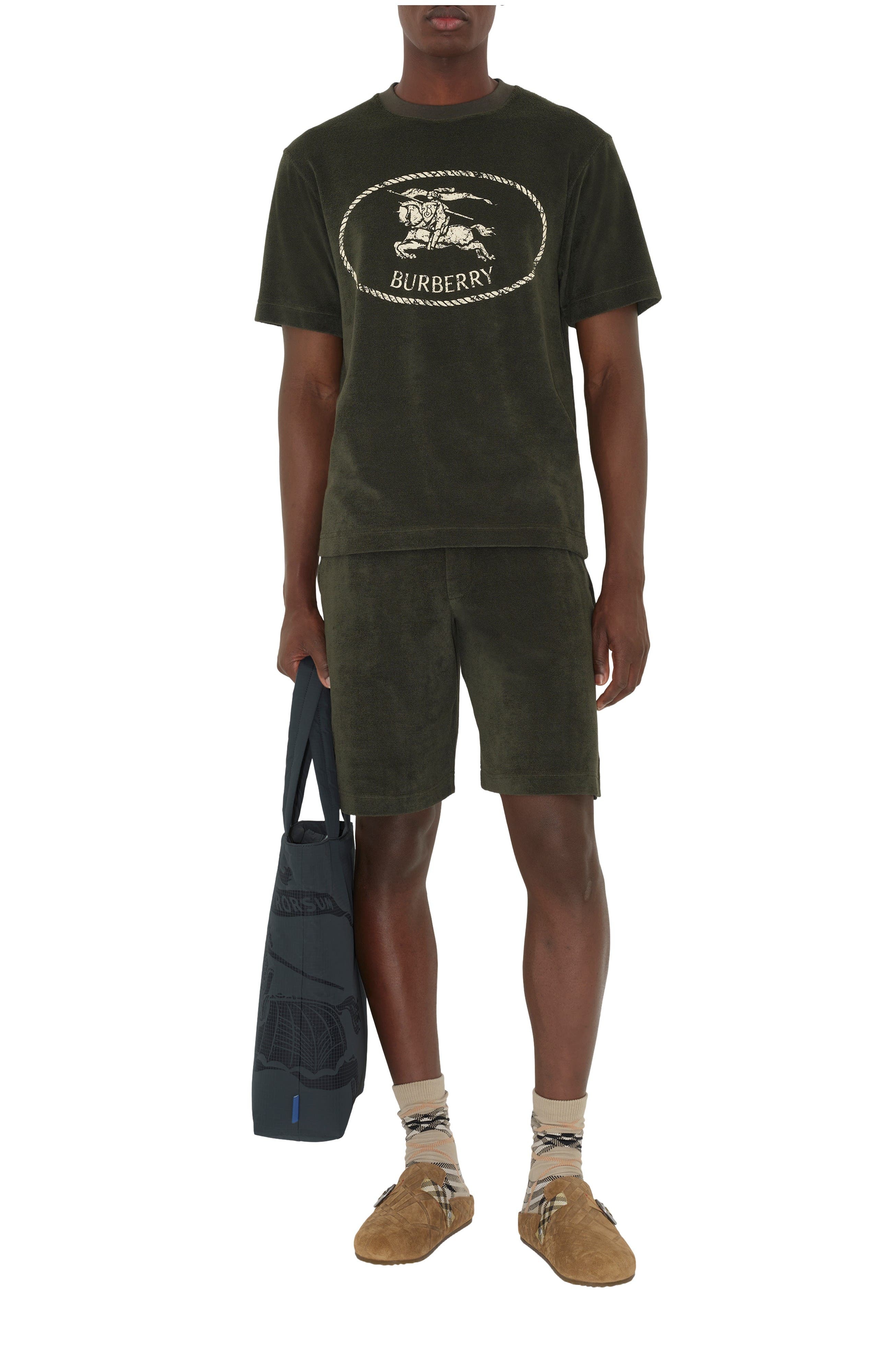 A T-shirt in a cotton blend towelling, cut to a relaxed fit. The style is printed with a distressed Knight stamp, an archival motif first seen on Burberry bags in the 1980s.||Rib-knit neckline Relaxed fit: a looser cut than our regular fit. Length: 72.5cm/28.5in (size UK M) Model’s height: 188cm/6ft 2in. Model wears size UK M 84% cotton, 16% polyamide Trim: 97% cotton, 3% elastane Machine wash Made in Portugal