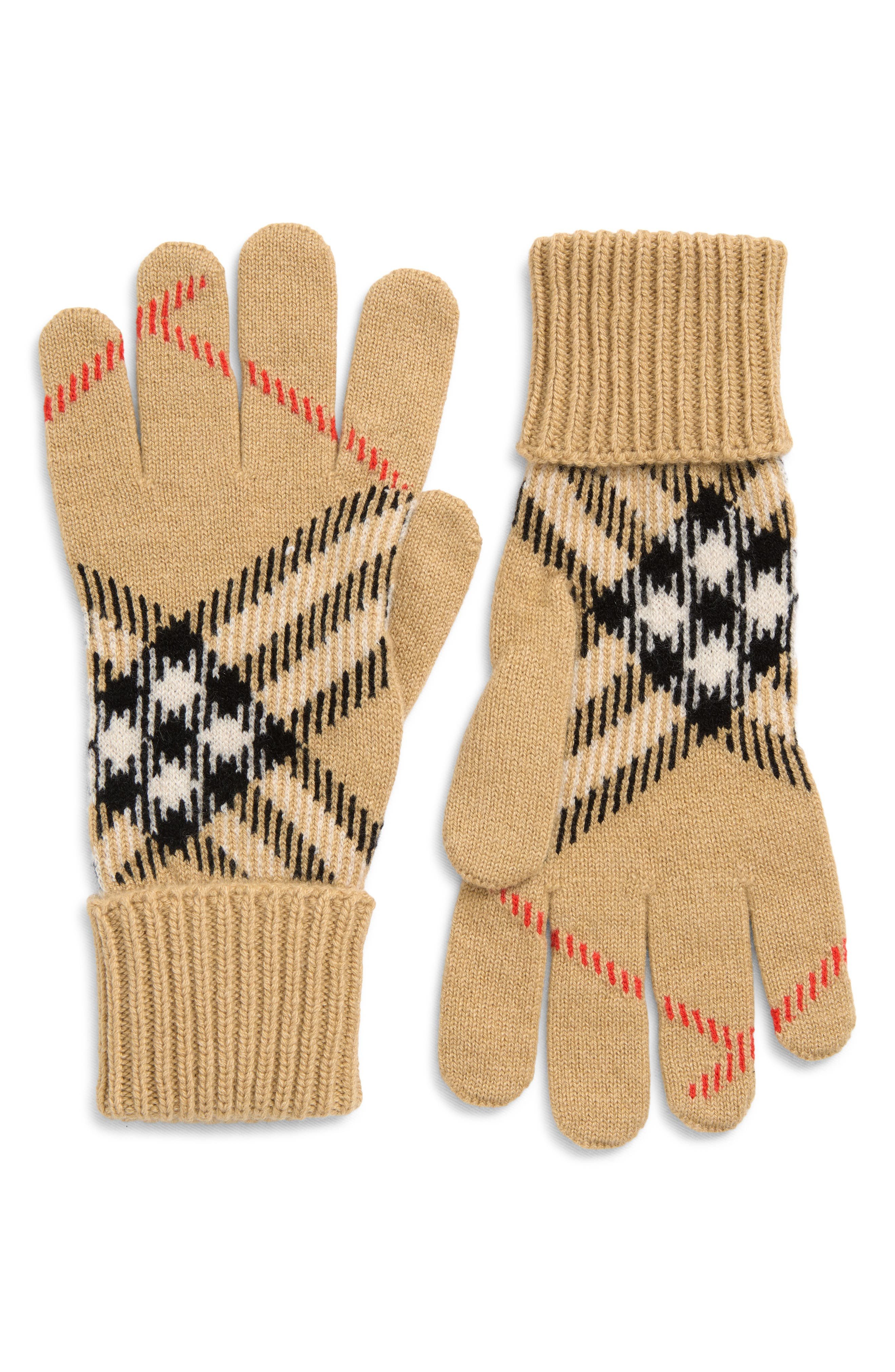 burberry Large Core Check Cashmere Blend Gloves in Sand at Nordstrom