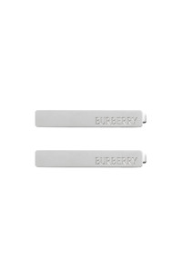 A pair of hair clips made in Italy from brass with palladium plating. The rectangular style is engraved with the Burberry logo. 6.5 x 1 cm/2.6 x 0.4in 100% brass with palladium plating Made in Italy