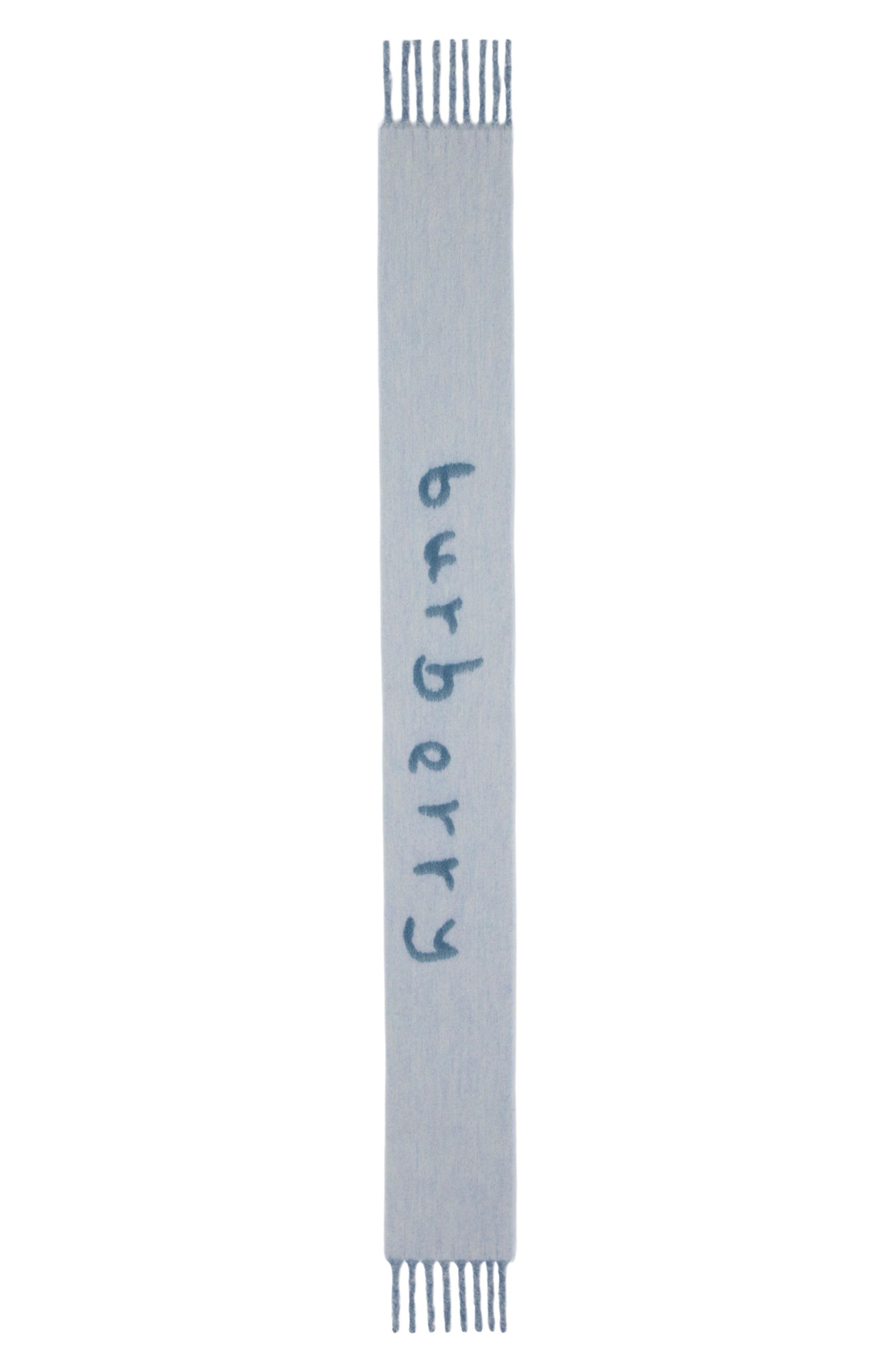 burberry Logo Text Jacquard Reversible Alpaca & Wool Blend Fringe Scarf in Blue at Nordstrom