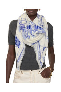 A lightweight scarf made in Italy from wool silk. The design is printed with hand-drawn artwork depicting iconic London landmarks including the Houses of Parliament, Tower Bridge, Trafalgar Square and our Horseferry House headquarters.||Rectangular|Eyelash fringing at edges|Printed Burberry lettering at border 195 x 135cm/76.8 x 53.2in 50% wool, 50% silk Specialist dry clean Made in Italy